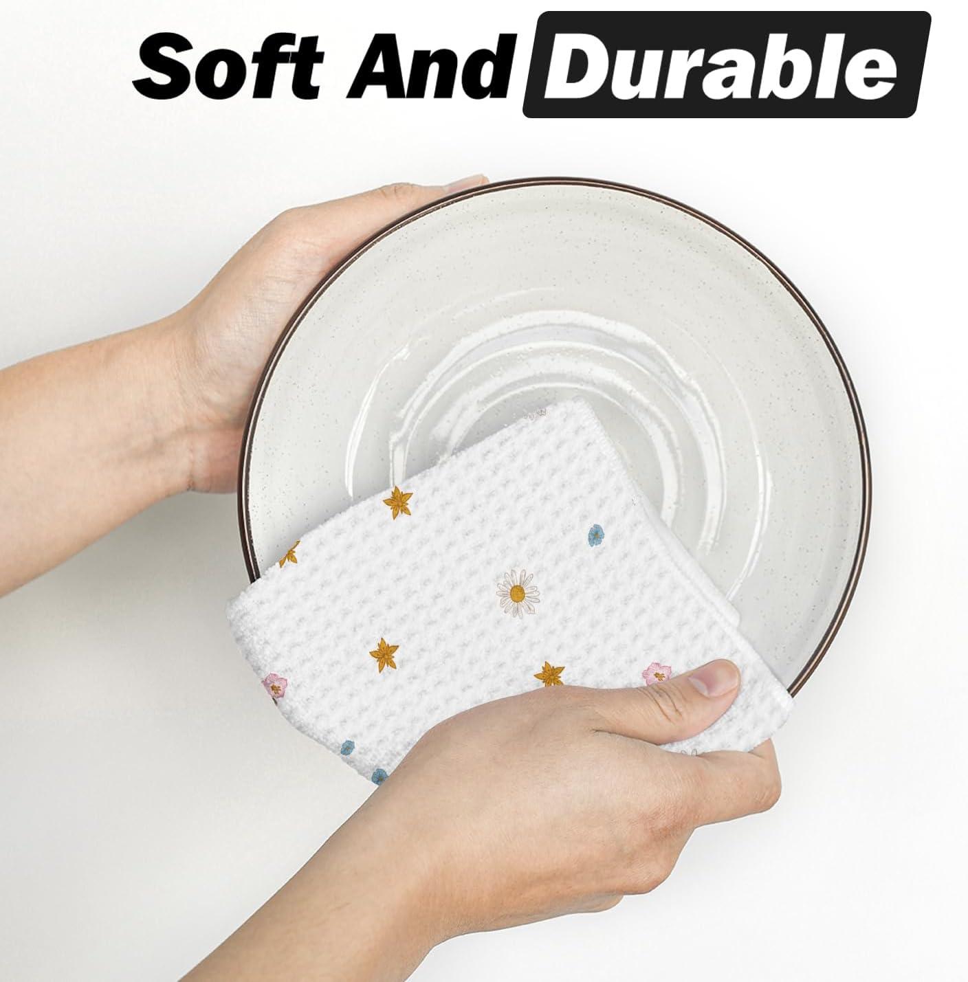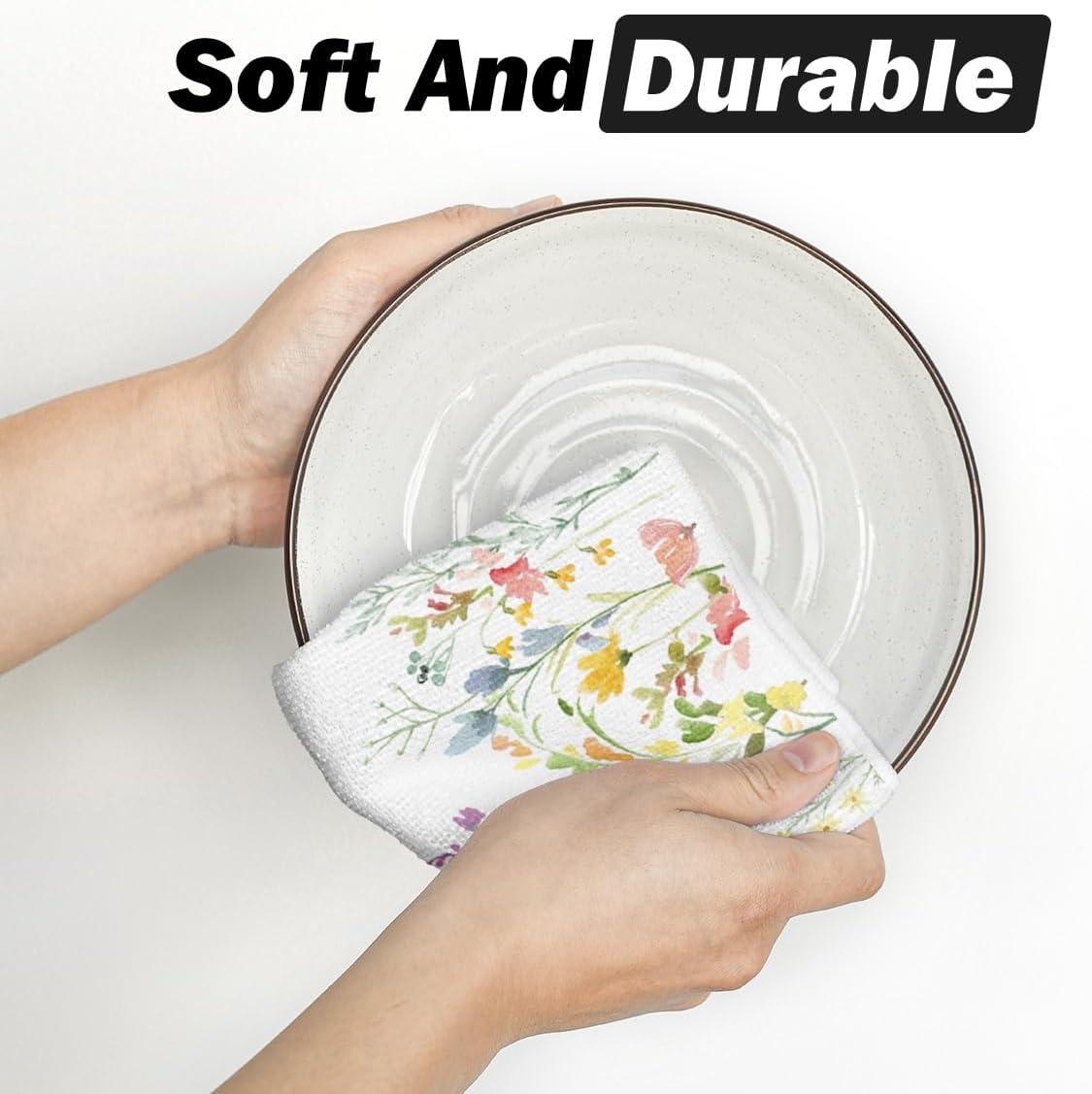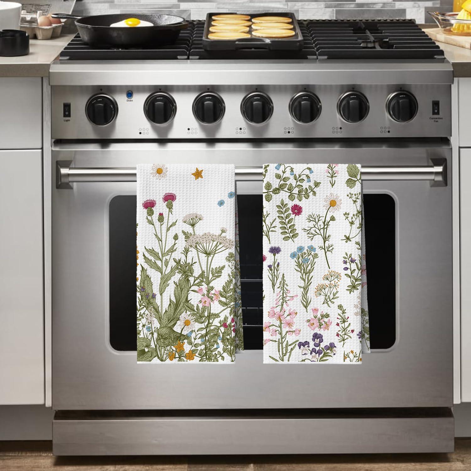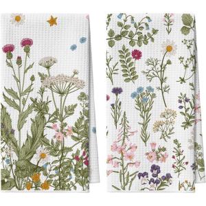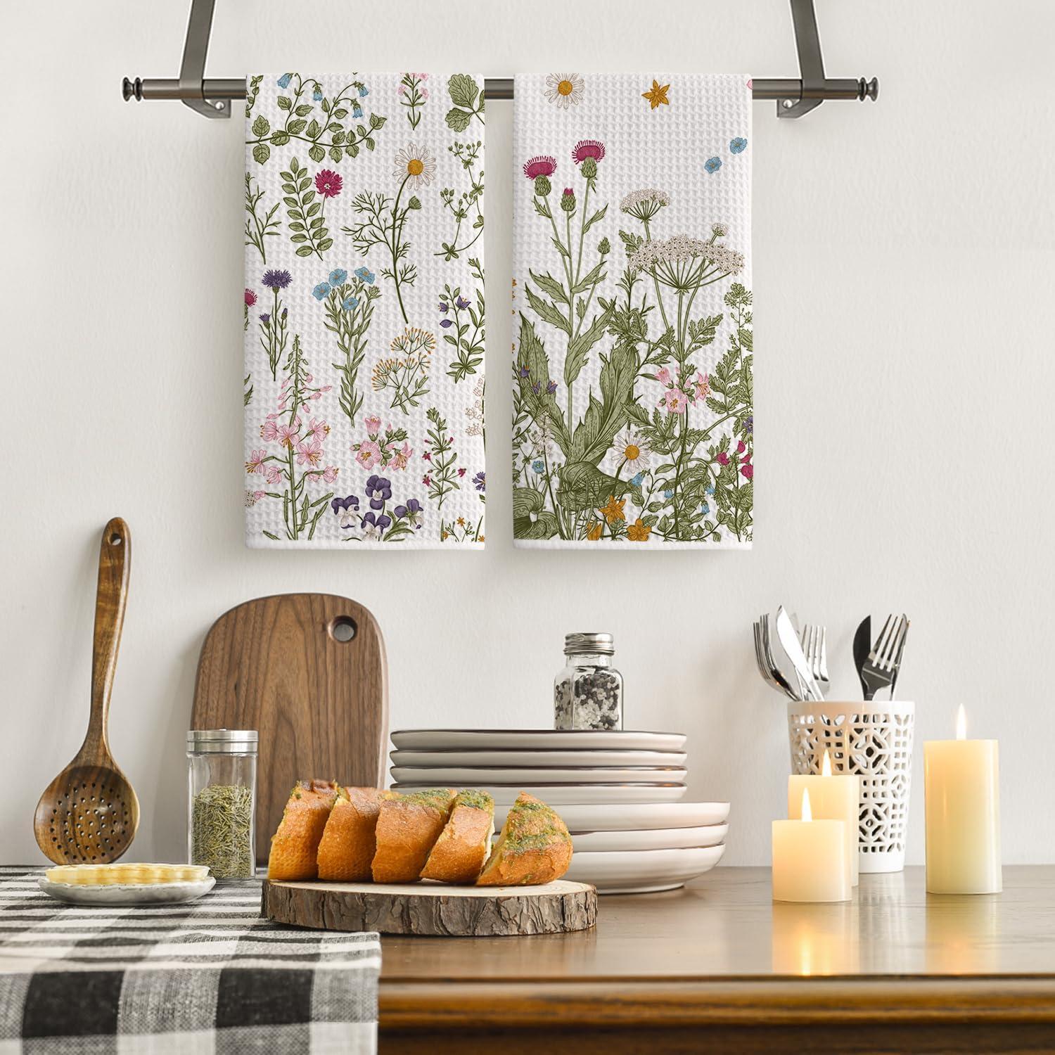Artoid Mode Wildflower Floral Kitchen Towels Dish Towels, 18×26 Inch Leaves Holiday Decoration Hand Towels Set of 2(Beige)