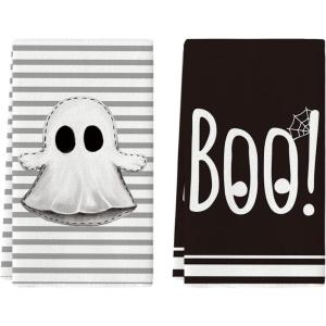 Artoid Mode Stripes Ghost Boo Halloween Kitchen Towels Dish Towels, 18×26 Inch Spider Web Decoration Hand Towels Set of 2(Black)