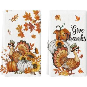 Artoid Mode Turkey Thanksgiving Kitchen Towels Dish Towels, 18×26 Inch Fall Gobble Pumpkin Decoration Hand Towels Set of 2