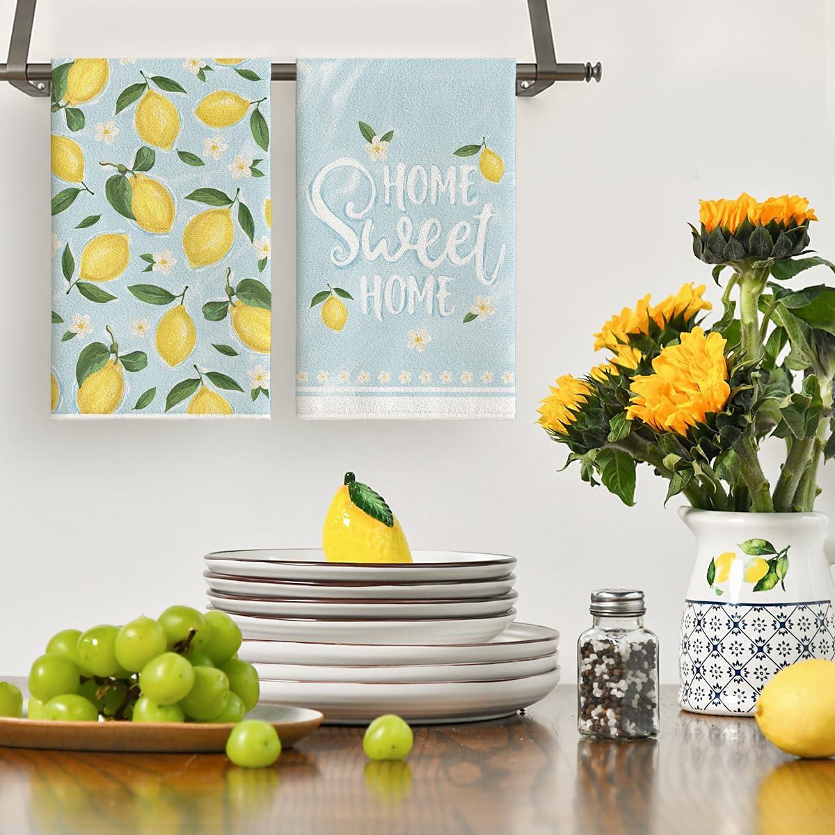 Artoid Mode Sweet Lemon Flower Summer Kitchen Towels Dish Towels, 18×26 Inch Home Farmhouse Summer Seasonal Decoration Hand Towels Set of 4