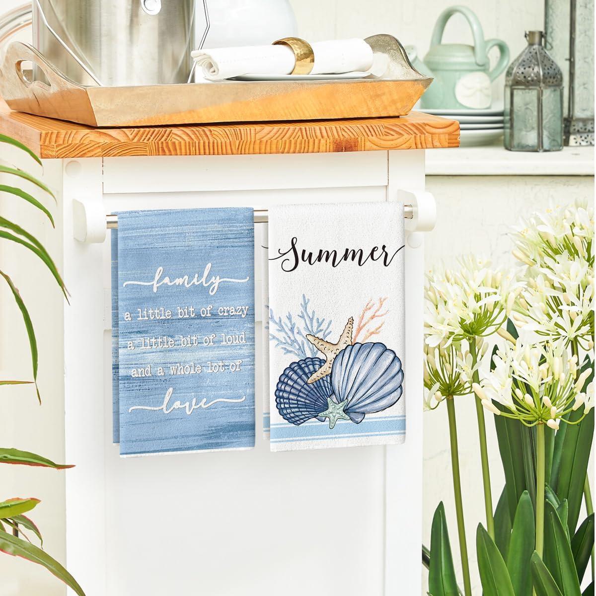 Artoid Mode Sweet Seashell Snail Starfish Summer Kitchen Towels Dish Towels, 18×26 Inch Farmhouse Summer Seasonal Decoration Hand Towels Set of 4