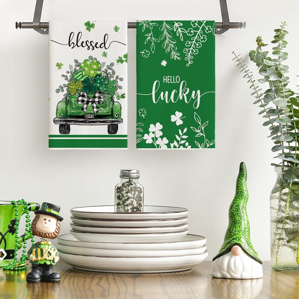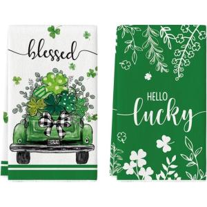 Artoid Mode Truck Lucky Shamrock Eucalyptus St. Patrick’s Day Kitchen Towels Dish Towels, 18×26 Inch Farmhouse Spring Decoration Hand Towels Set of 2