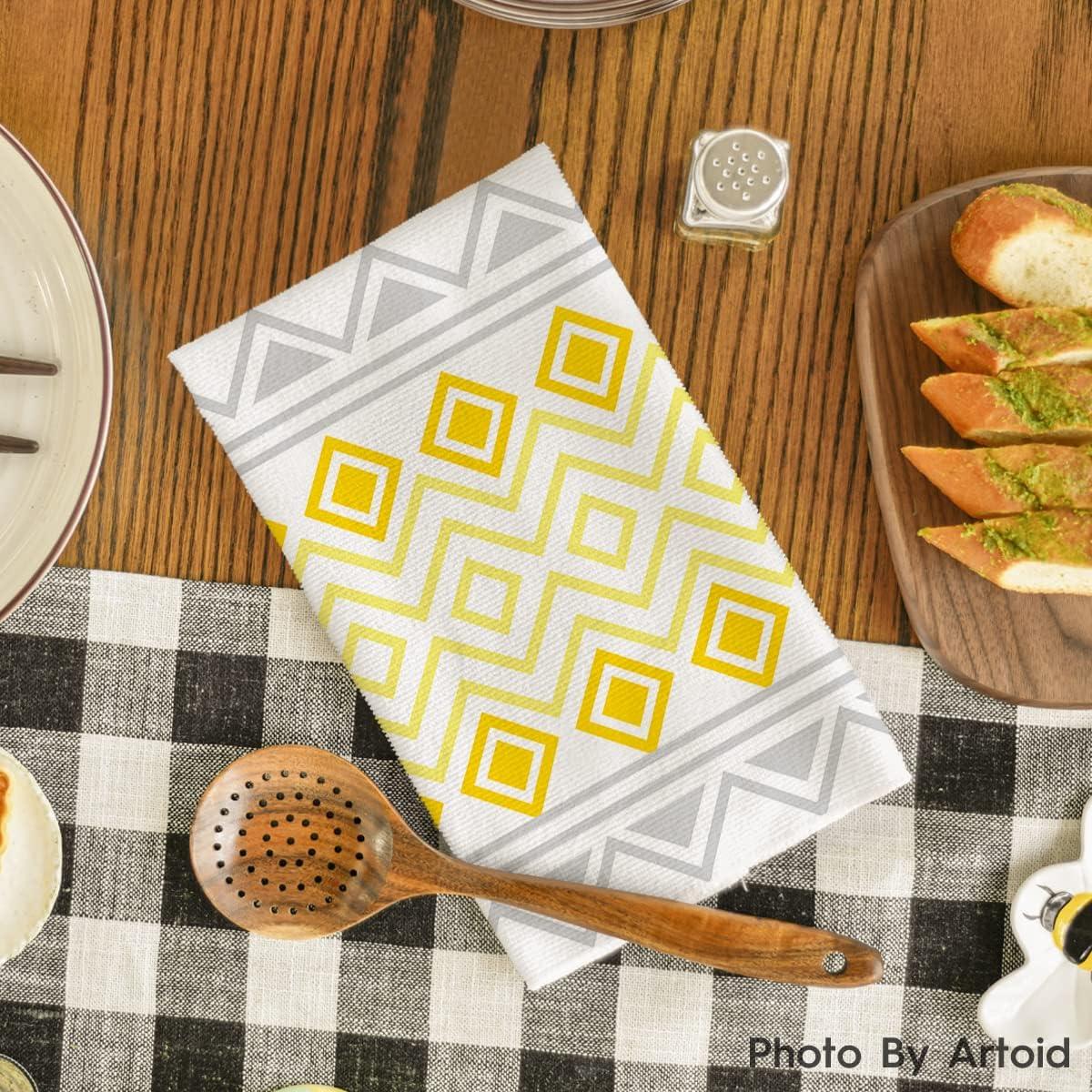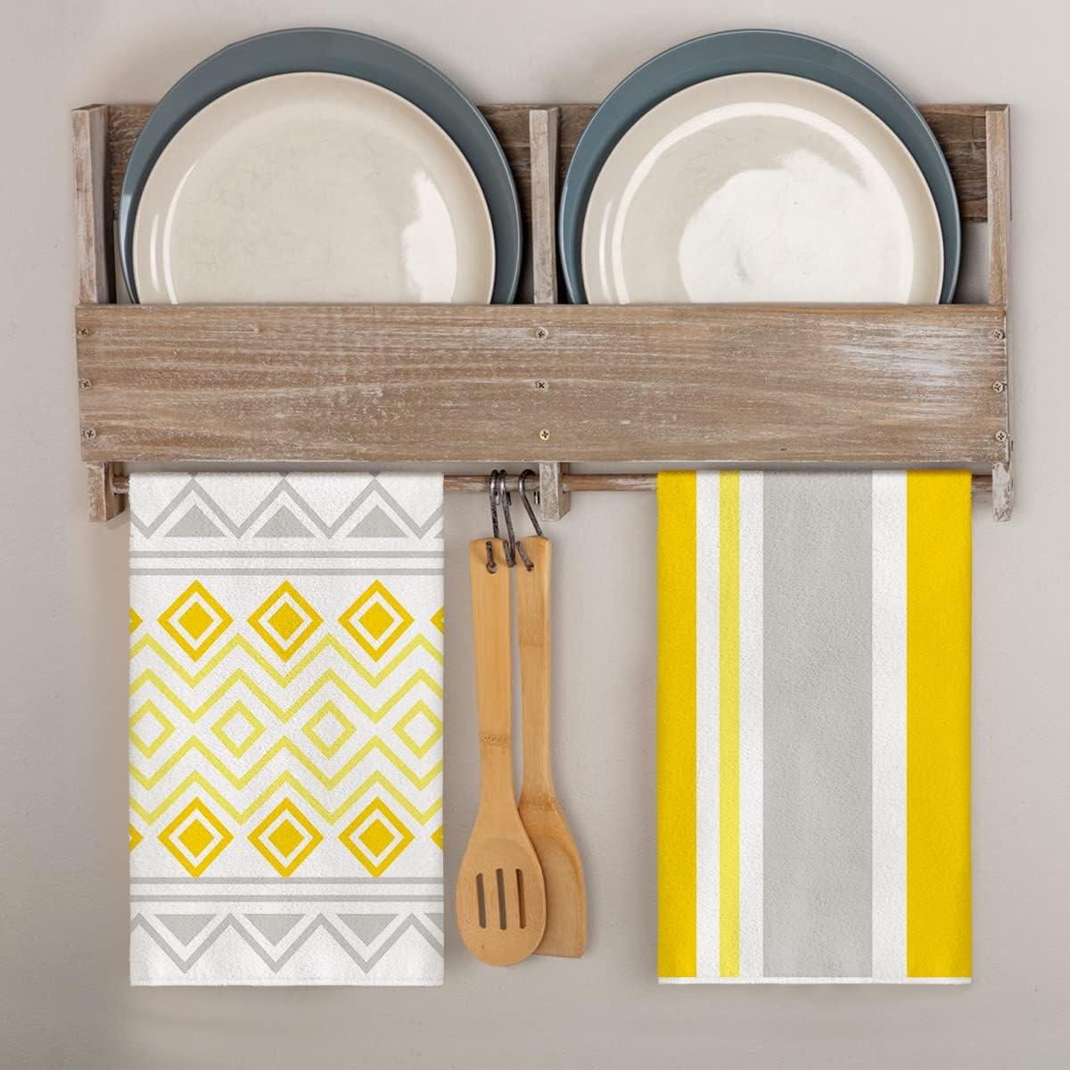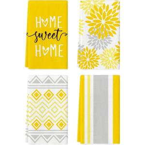 Artoid Mode Pink Stripes Home Sweet Home Boho Kitchen Towels Dish Towels, 18×26 Inch Wedding Decoration Hand Towels Set of 4(Yellow)