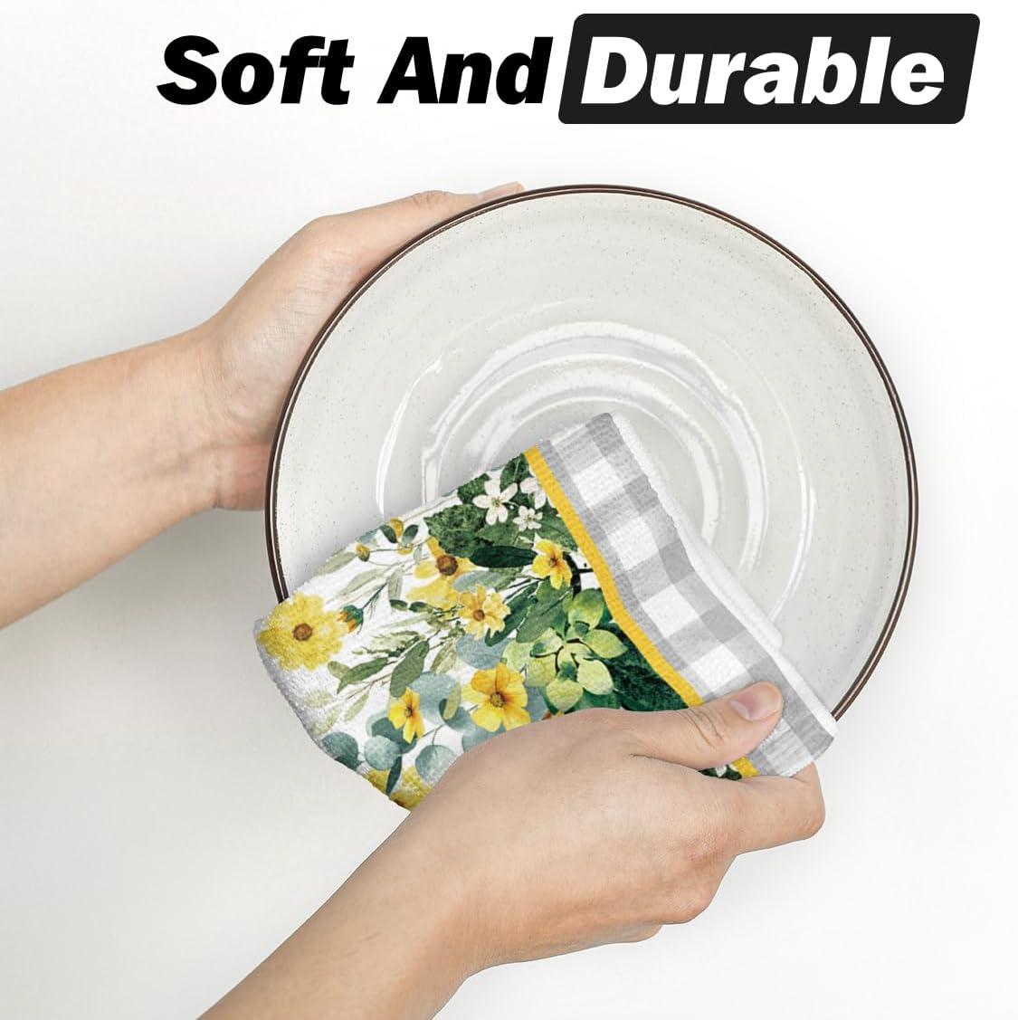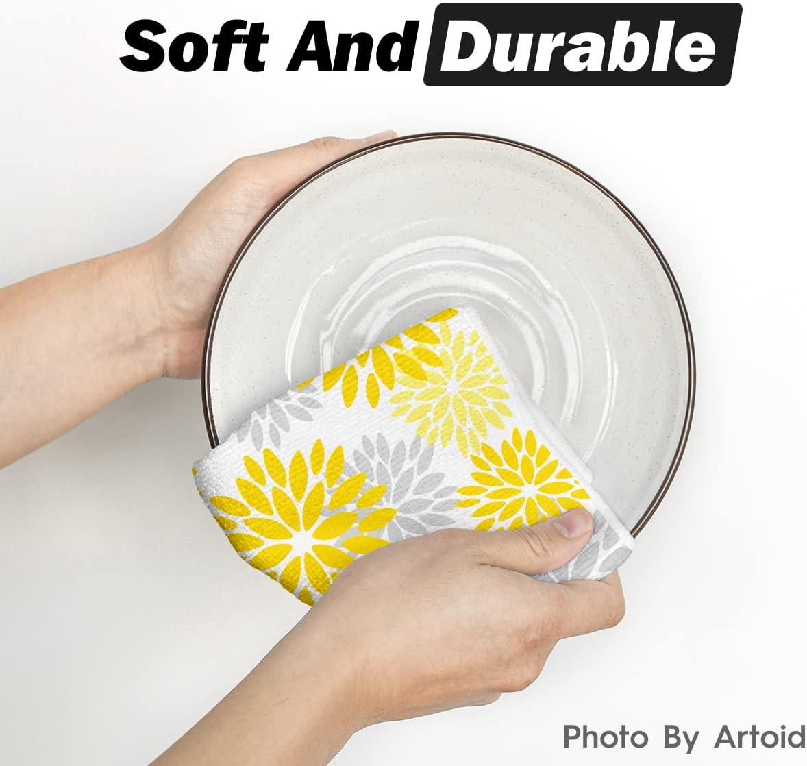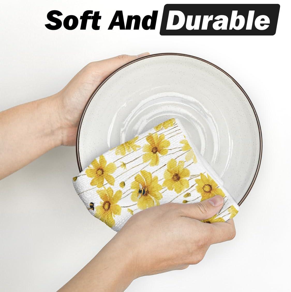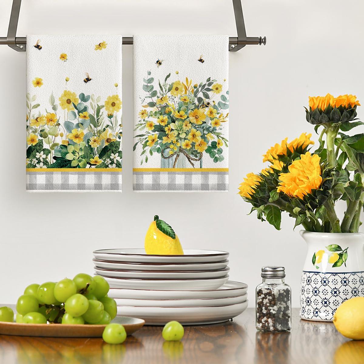 Artoid Mode Yellow Flowers Bee Hello Sunshine Spring Kitchen Towels Dish Towels, 18×26 Inch Summer Holiday Decoration Hand Towels Set of 2(Yellow)