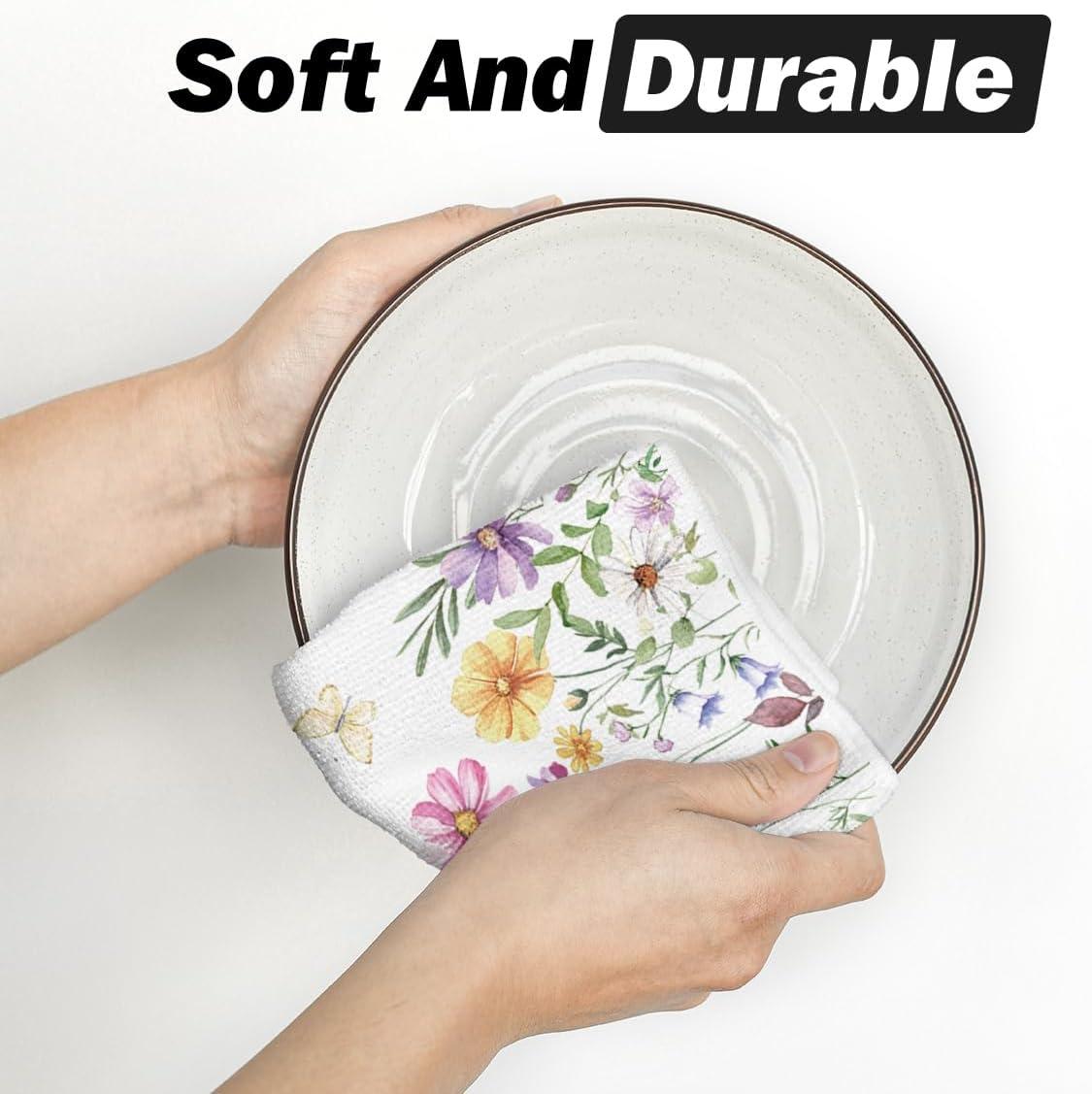 Artoid Mode Wildflowers Floral Spring Kitchen Towels Dish Towels, 18×26 Inch Seasonal Summer Butterfly Decoration Hand Towels Set of 2(Beige)