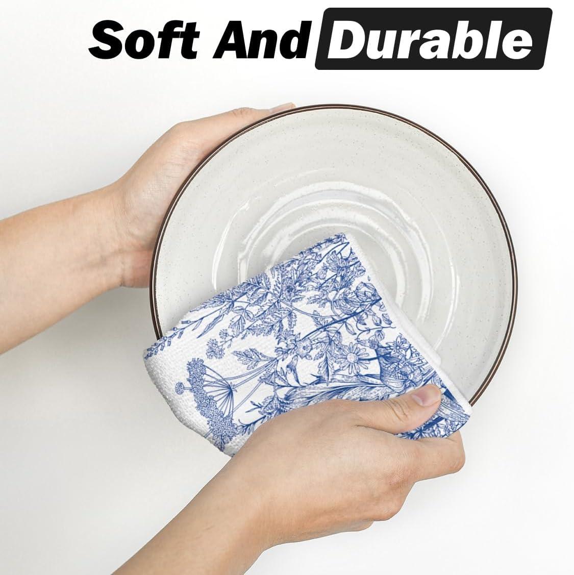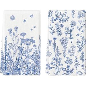 Artoid Mode Wildflower Floral Kitchen Towels Dish Towels, 18×26 Inch Leaves Holiday Decoration Hand Towels Set of 2(Blue)