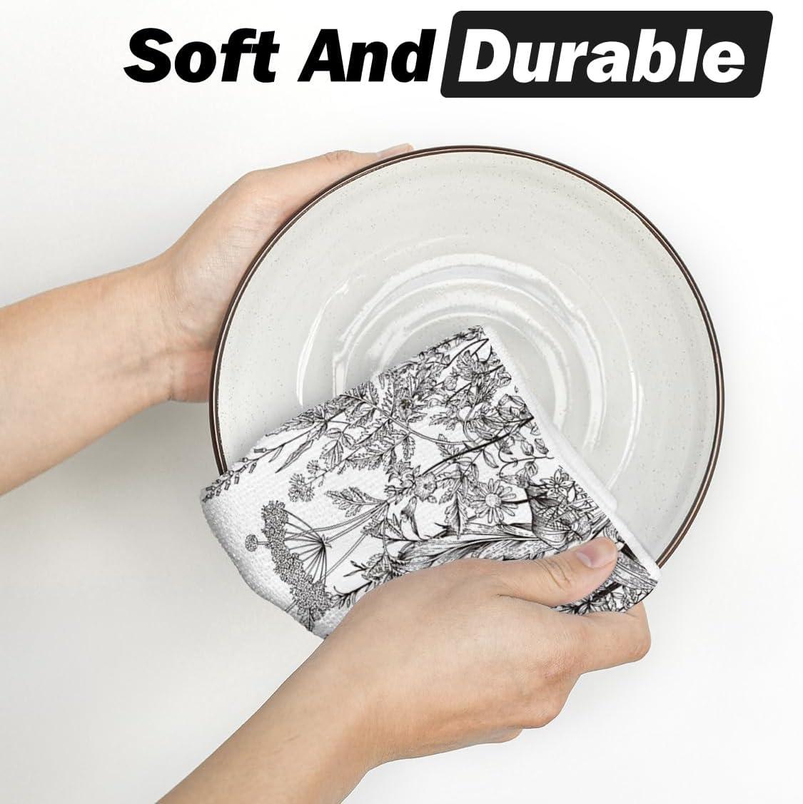 Artoid Mode Wildflower Floral Halloween Kitchen Towels Dish Towels, 18×26 Inch Farmhouse Leaves Decoration Hand Towels Set of 2(Black)