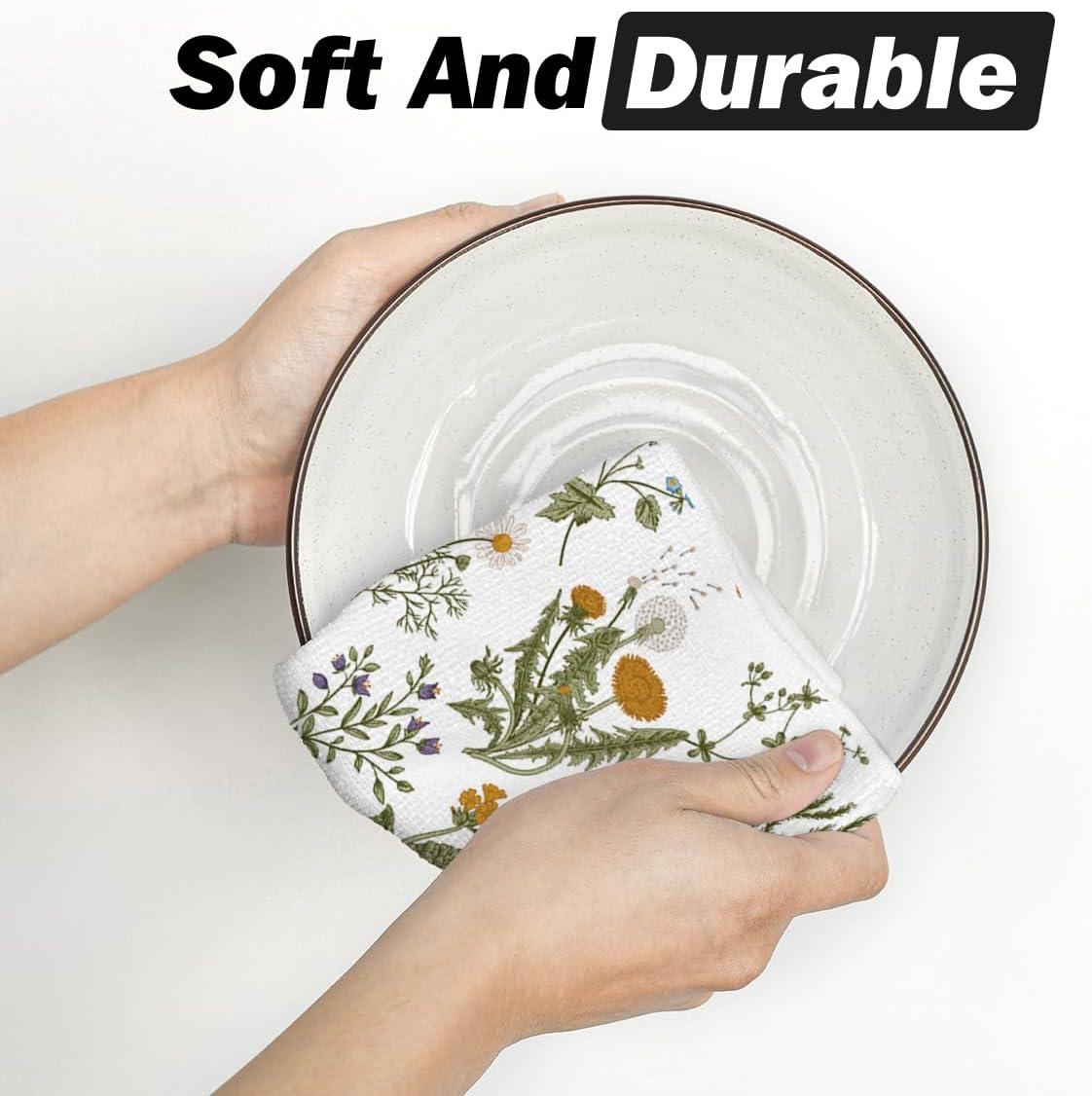 Artoid Mode Wildflower Floral Kitchen Towels Dish Towels, 18×26 Inch Leaves Holiday Decoration Hand Towels Set of 2(Beige)