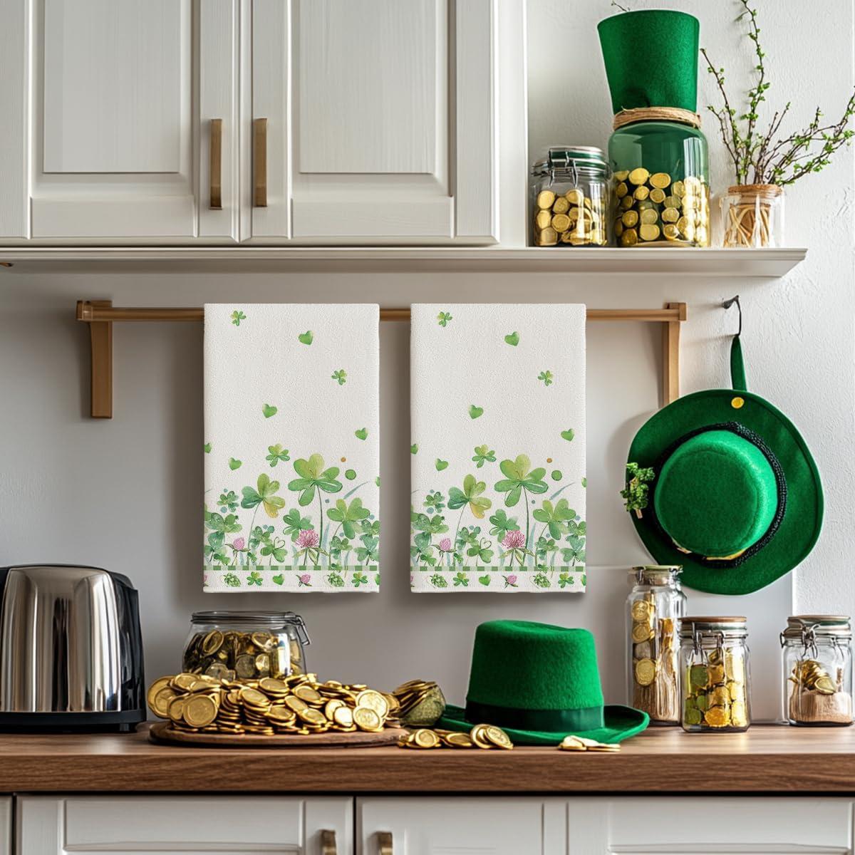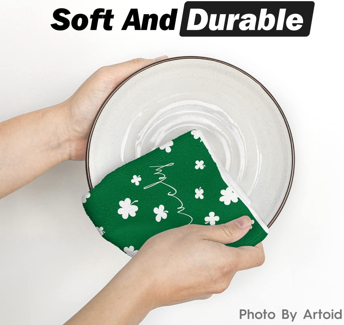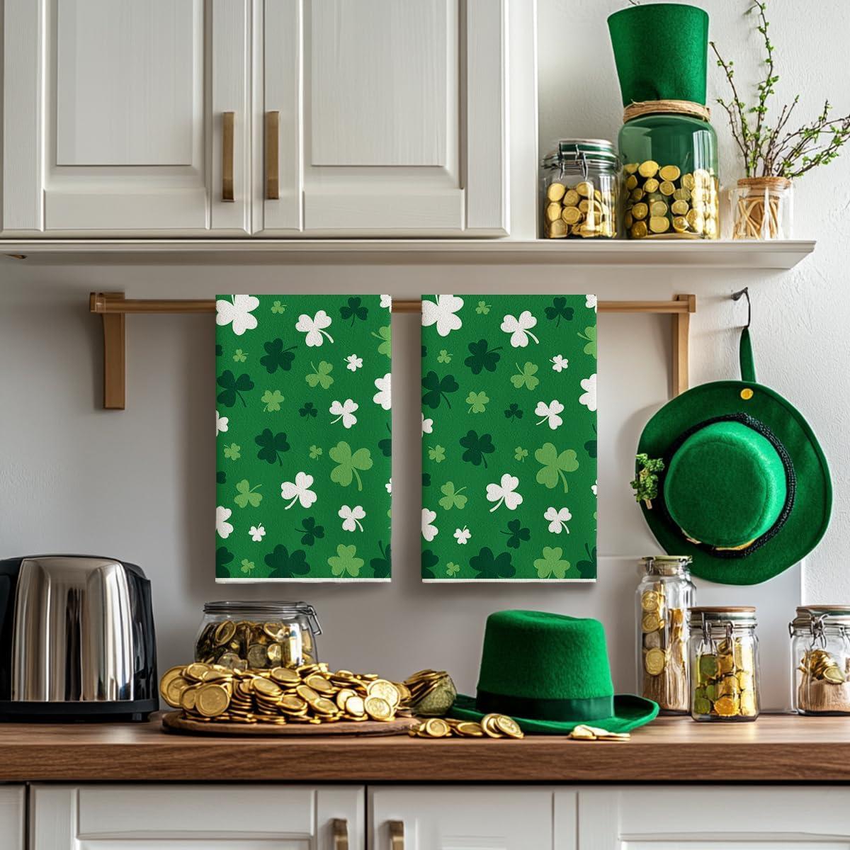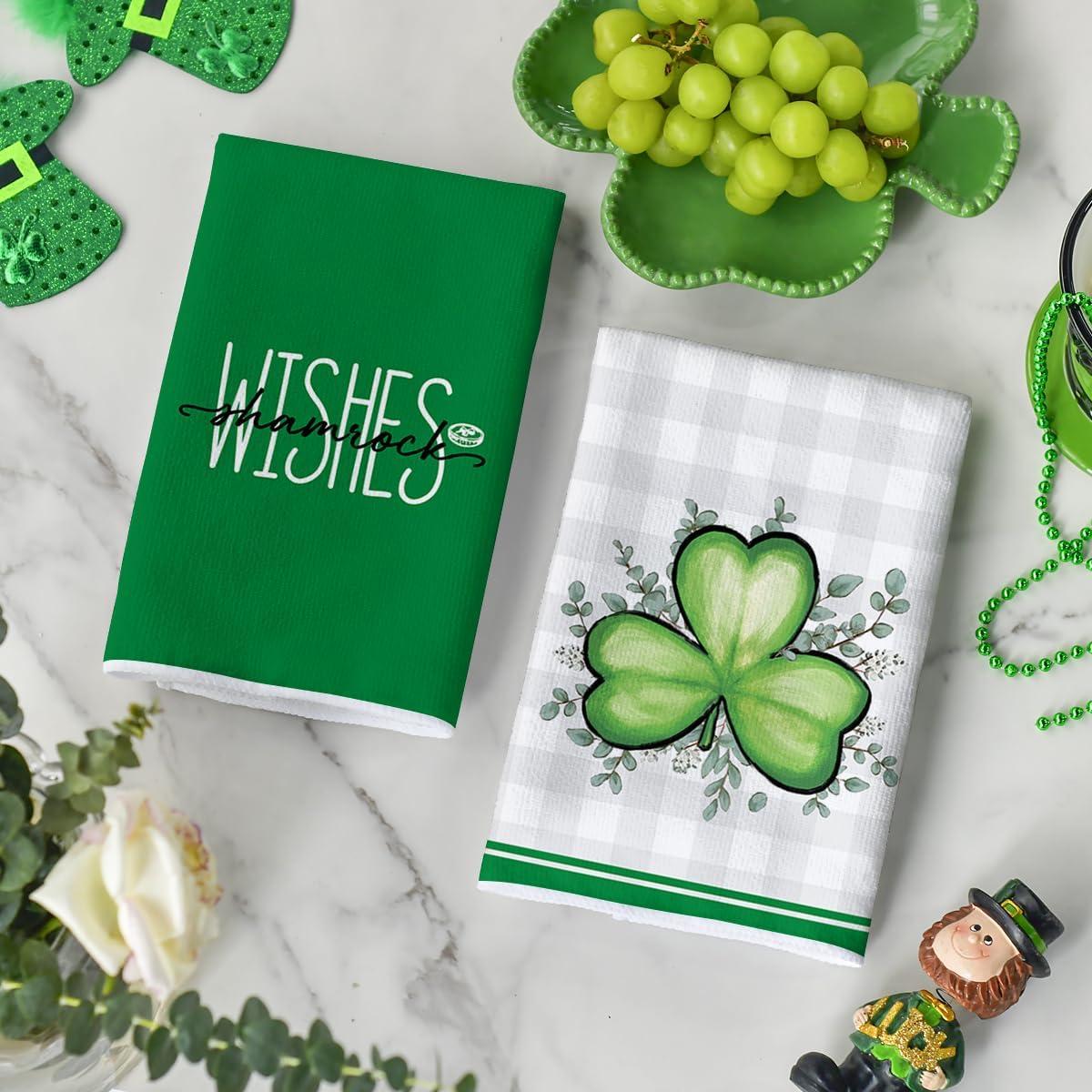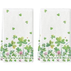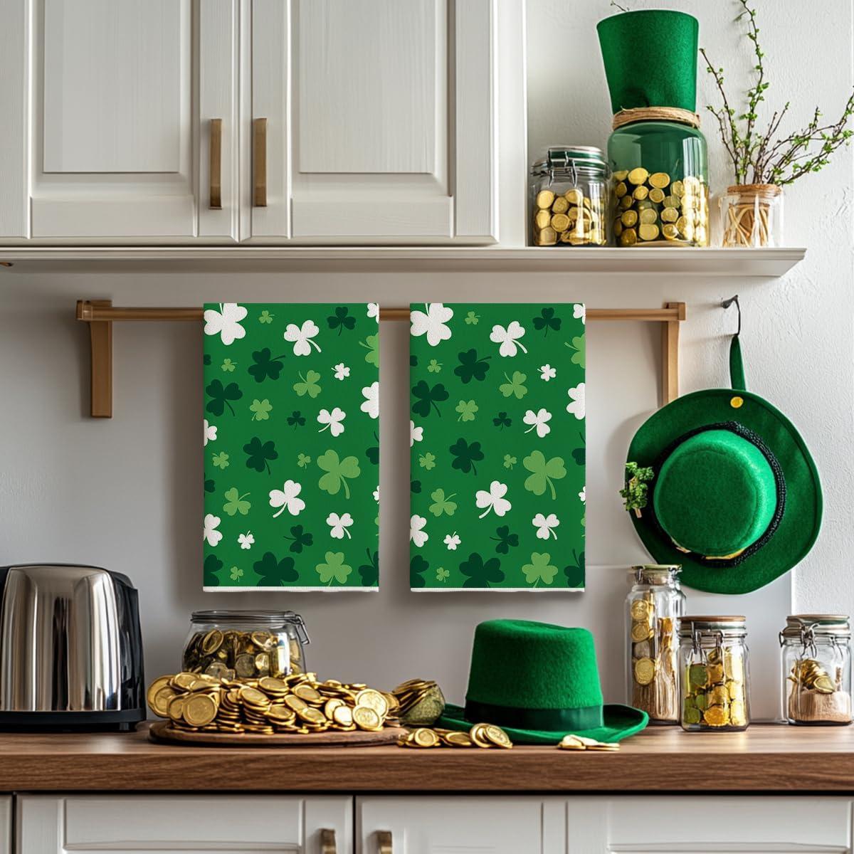Artoid Mode Green Clover Shamrock St. Patrick’s Day Kitchen Towels Dish Towels, 18×26 Inch Farmhouse Holiday Spring Decoration Hand Towels Set of 2(Green)