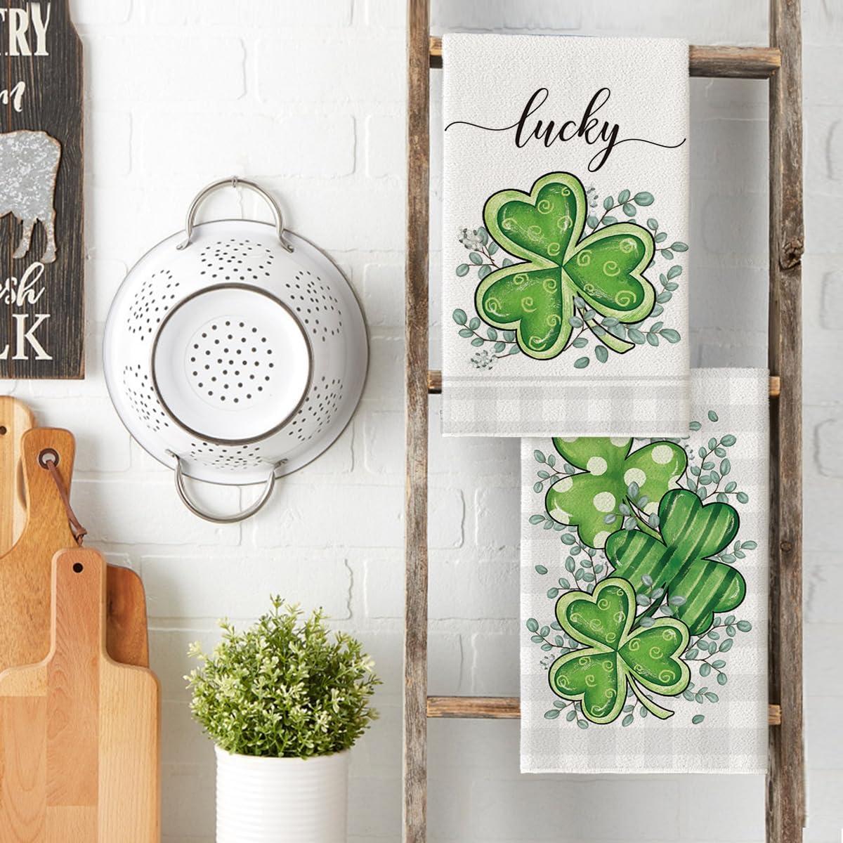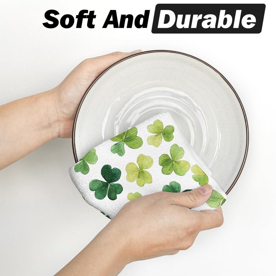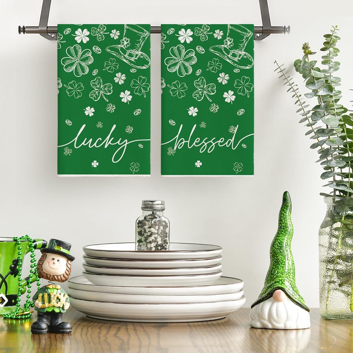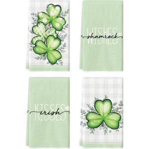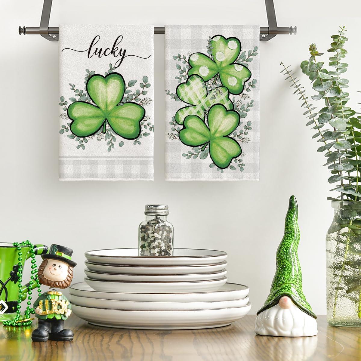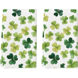 Artoid Mode Green Clover Shamrock St. Patrick’s Day Kitchen Towels Dish Towels, 18×26 Inch Farmhouse Holiday Spring Decoration Hand Towels Set of 2(Green)