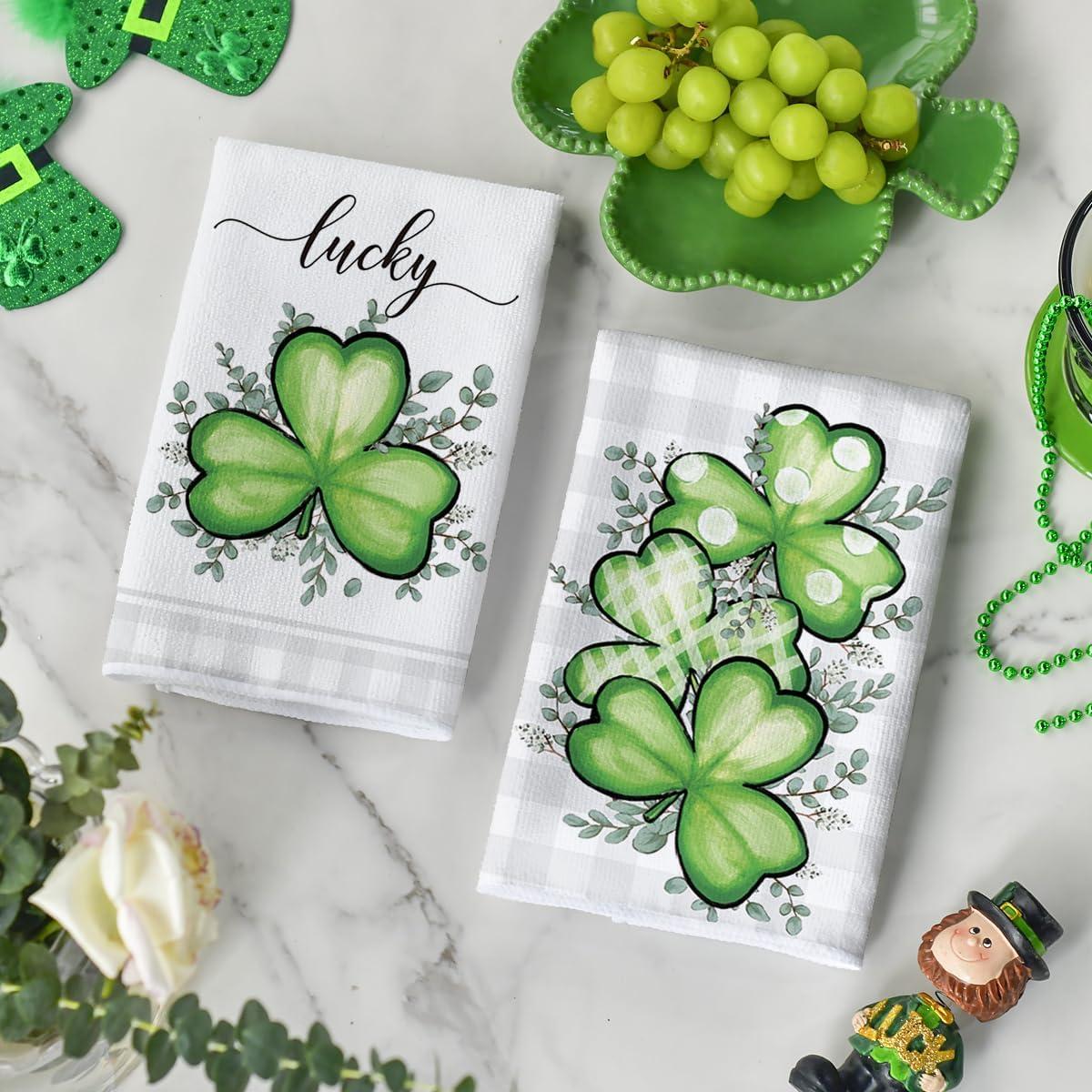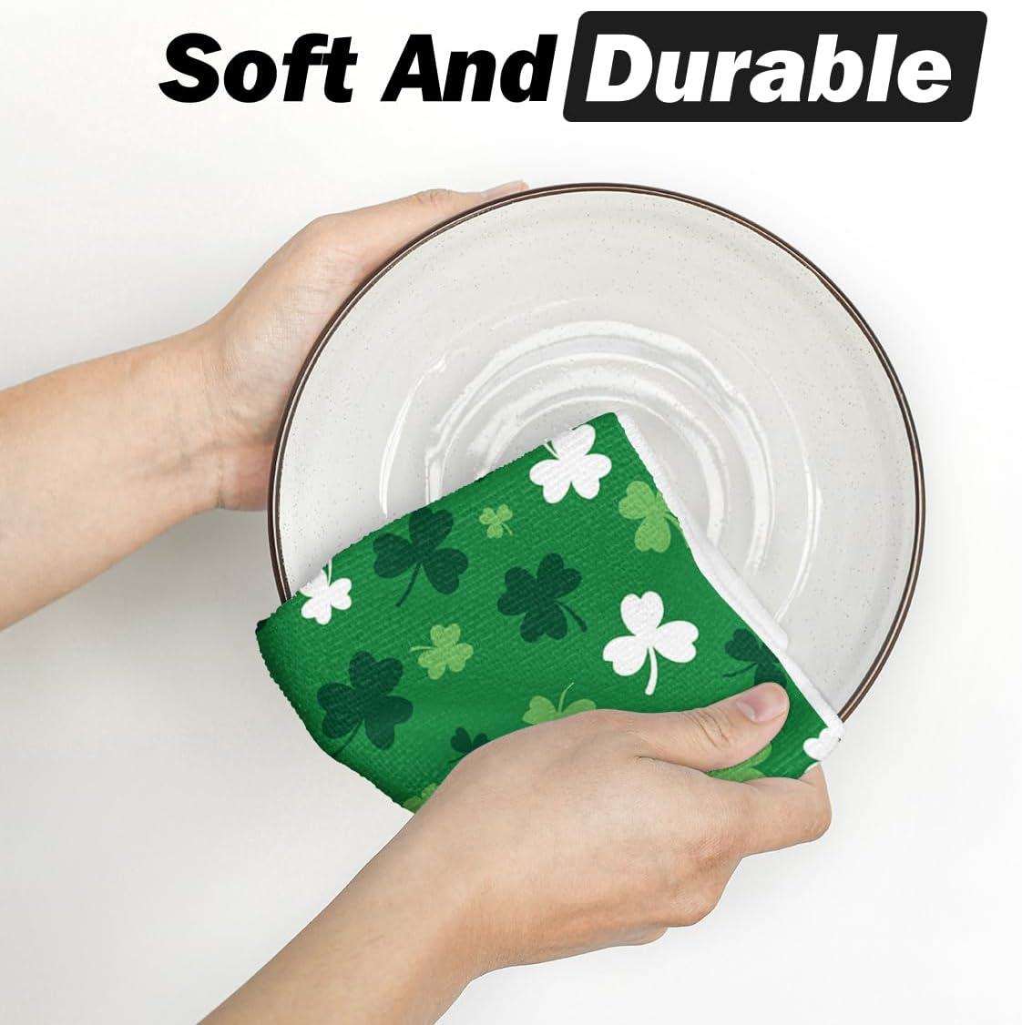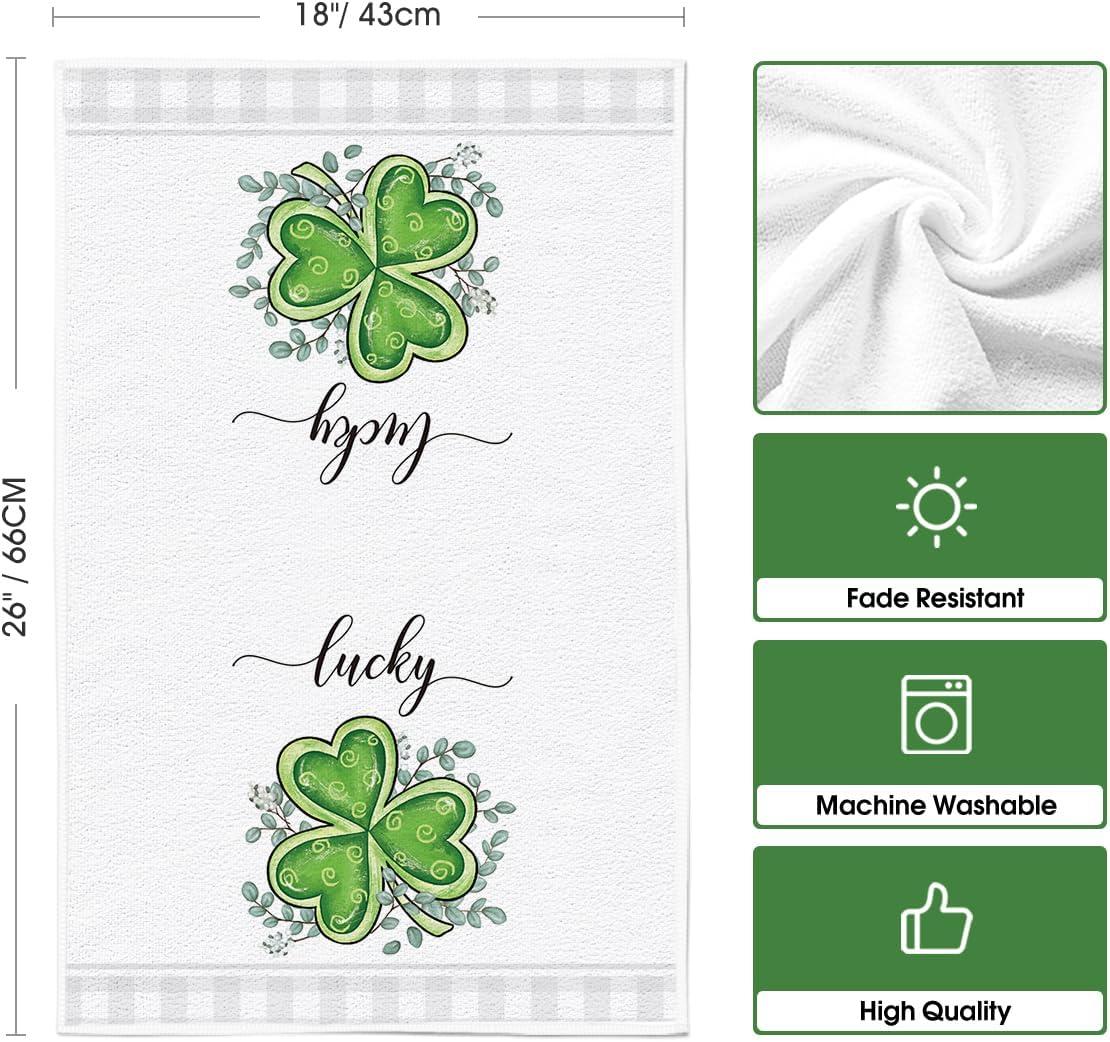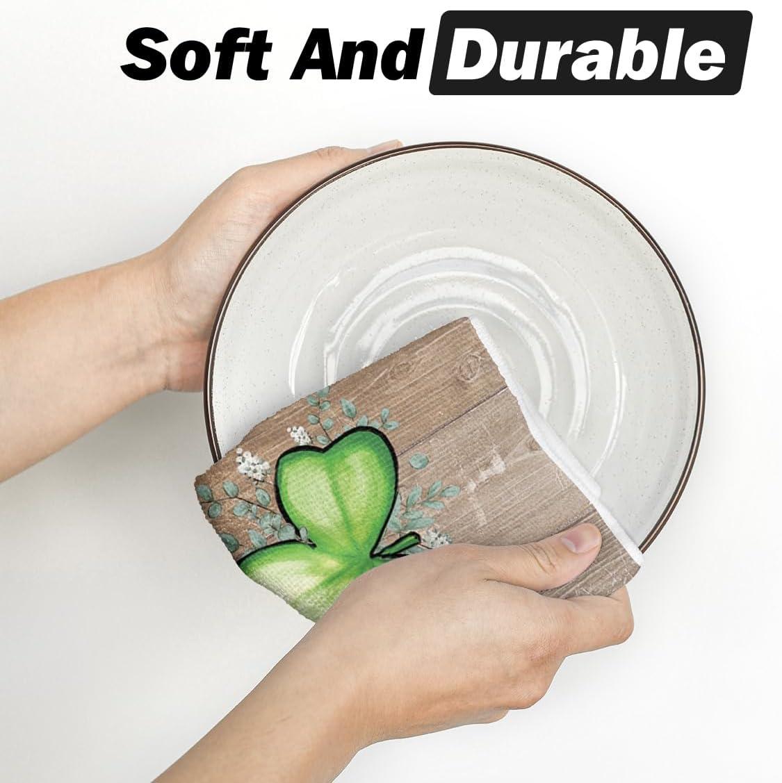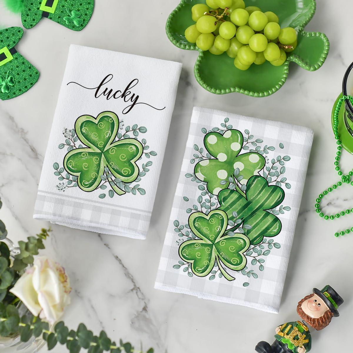 Artoid Mode Green Clover Shamrock St. Patrick’s Day Kitchen Towels Dish Towels, 18×26 Inch Farmhouse Holiday Spring Decoration Hand Towels Set of 2(Green)