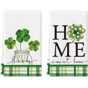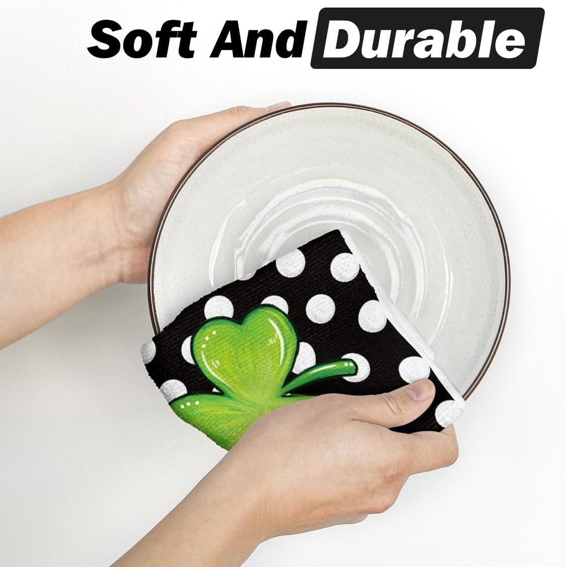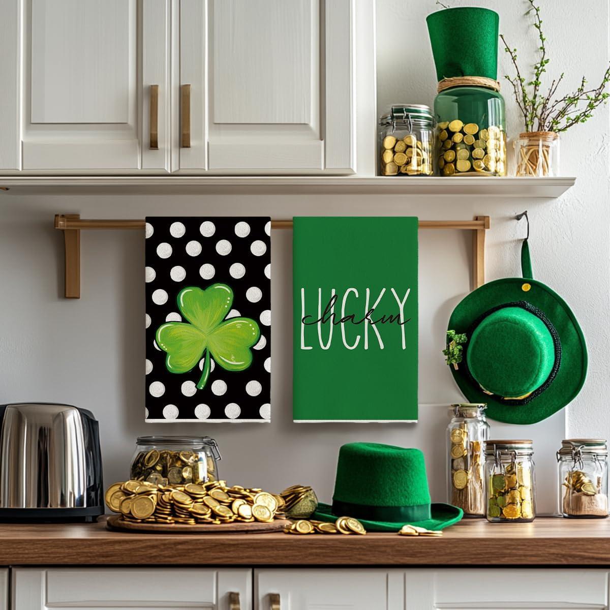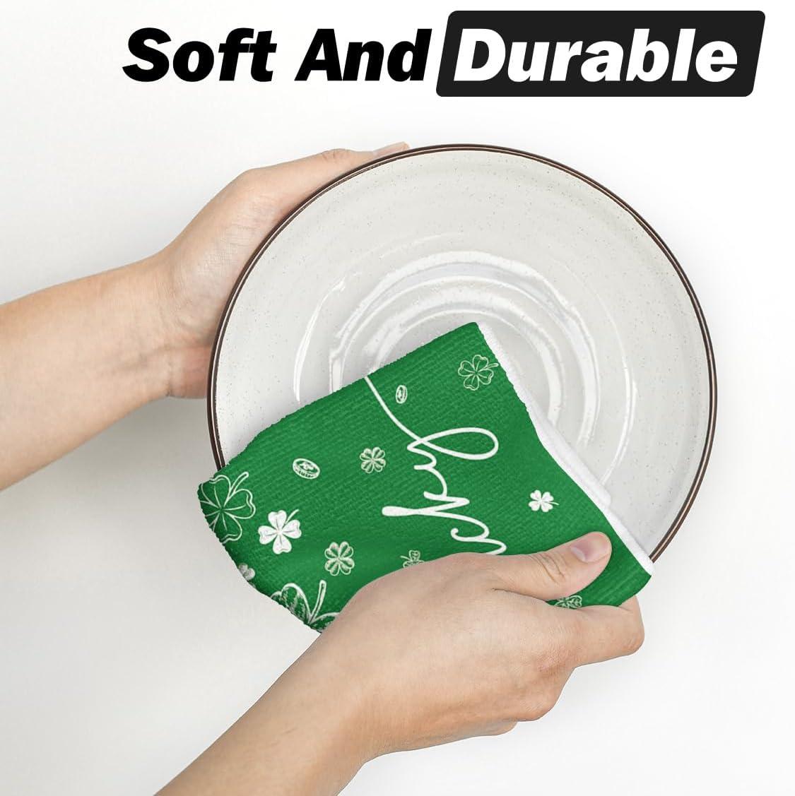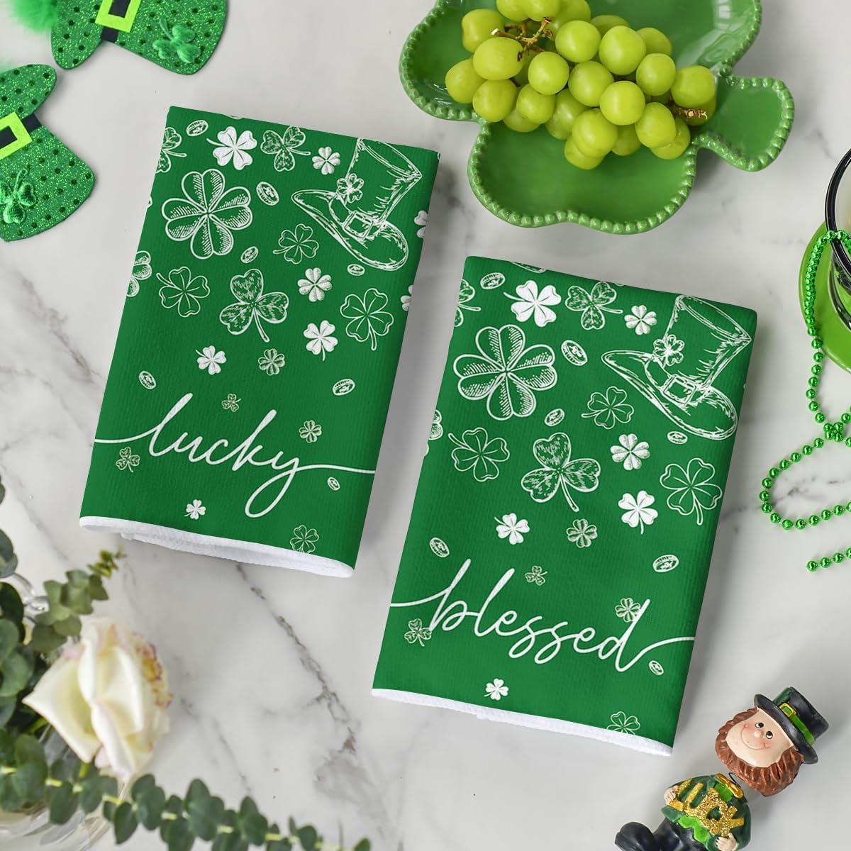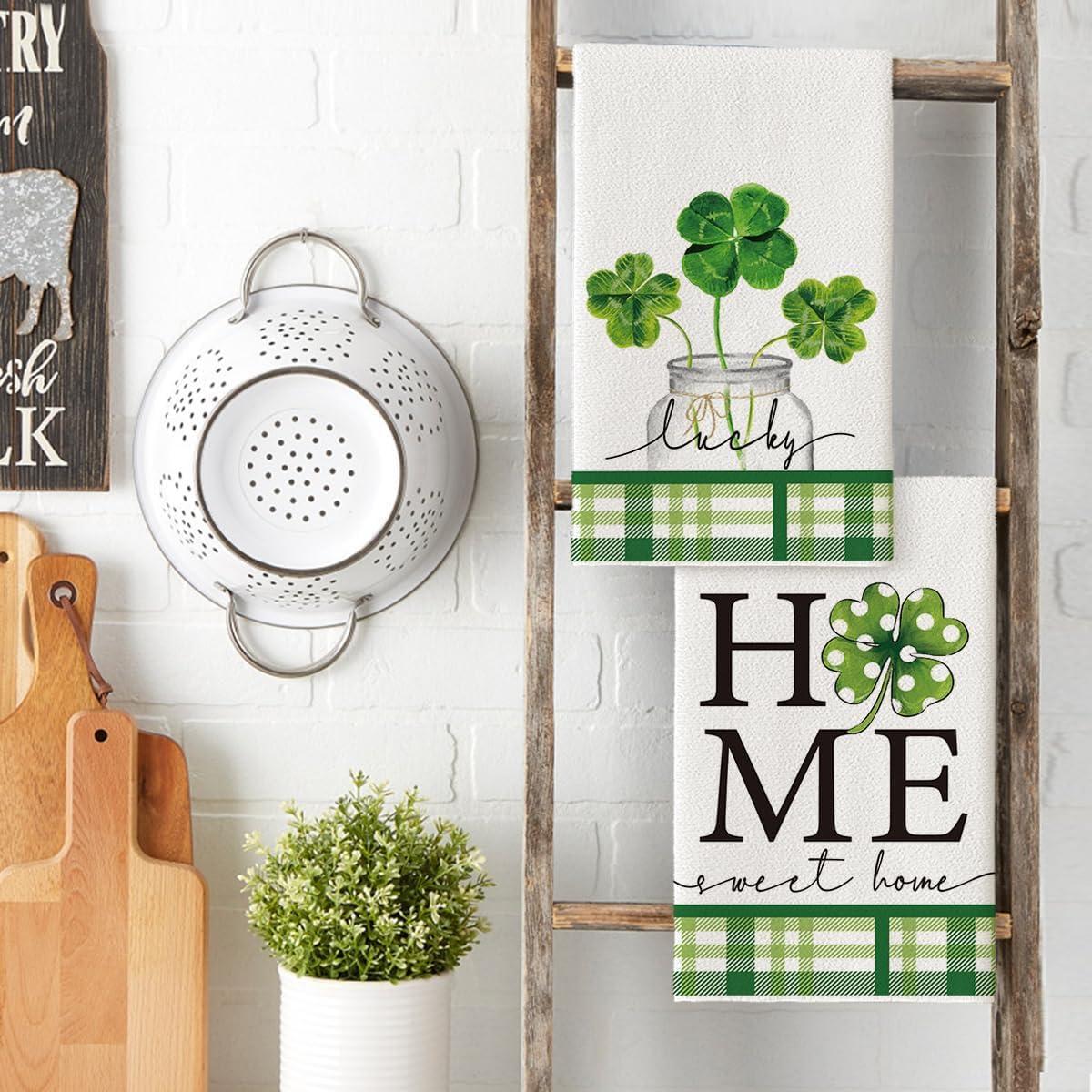 Artoid Mode Green Clover Shamrock St. Patrick’s Day Kitchen Towels Dish Towels, 18×26 Inch Farmhouse Holiday Spring Decoration Hand Towels Set of 2(Green)