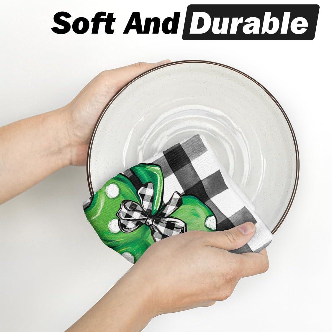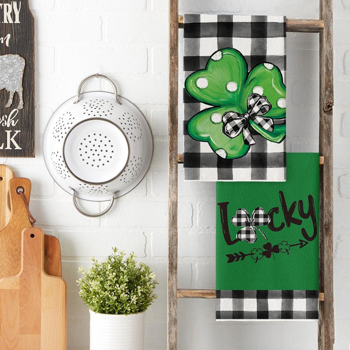 Artoid Mode Buffalo Plaid Clover Shamrock St. Patrick’s Day Kitchen Towels Dish Towels, 18×26 Inch Farmhouse Holiday Decoration Hand Towels Set of 2(Light Green)