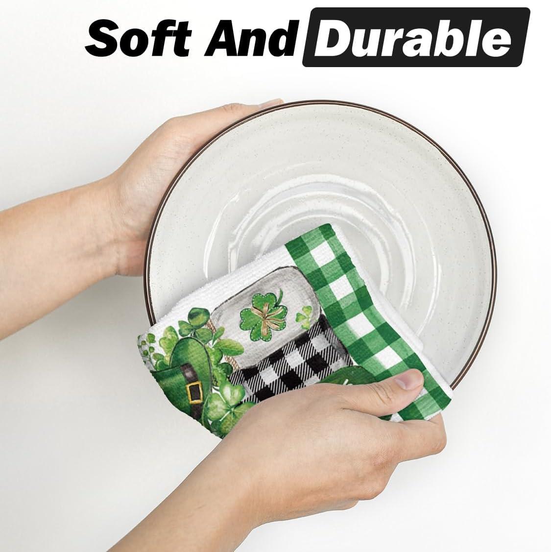 Artoid Mode Green Clover Shamrock St. Patrick’s Day Kitchen Towels Dish Towels, 18×26 Inch Farmhouse Holiday Spring Decoration Hand Towels Set of 2(3pcs green)
