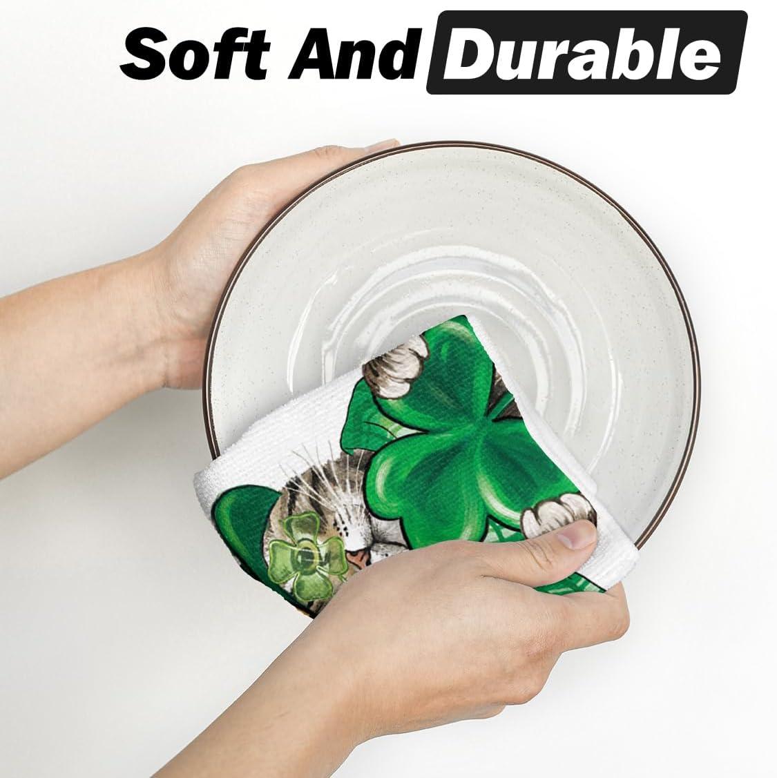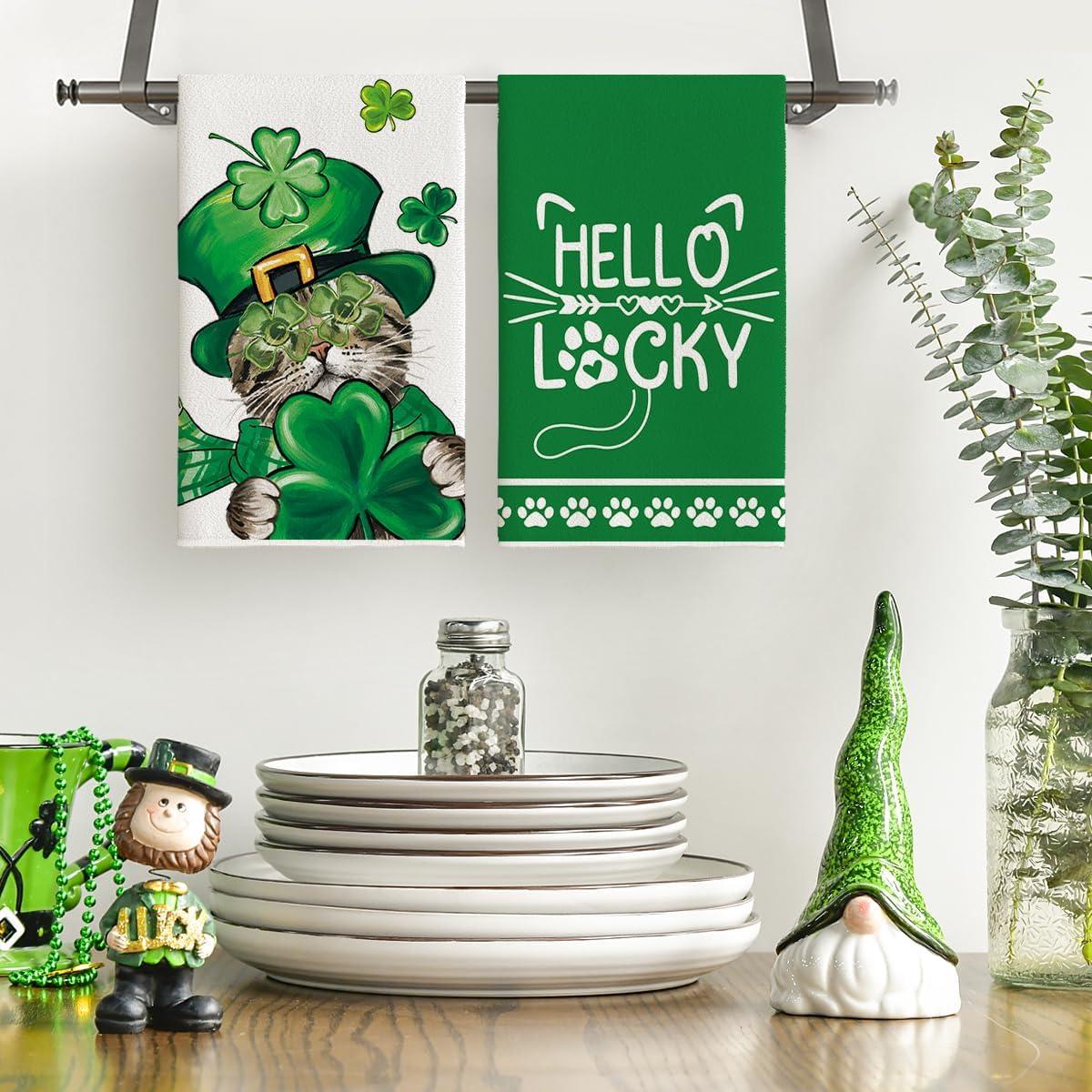 Artoid Mode Cat Shamrock St. Patrick’s Day Kitchen Towels Dish Towels, 18×26 Inch Hello Lucky Seasonal Spring Decoration Hand Towels Set of 2