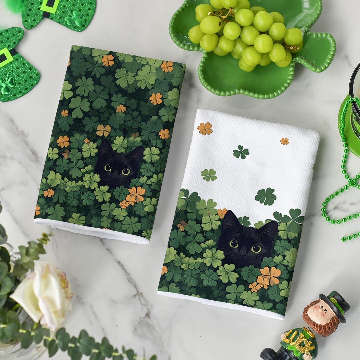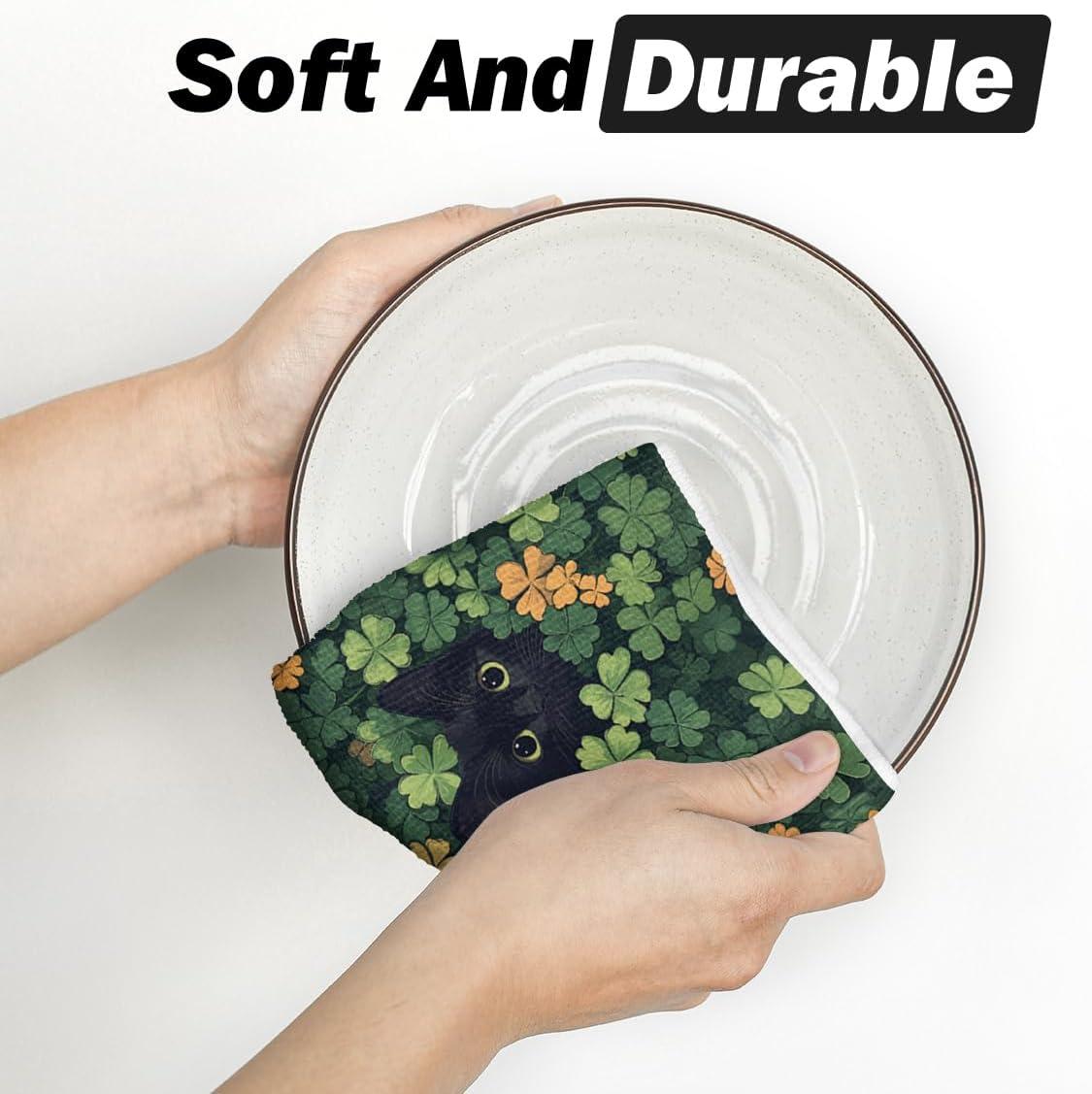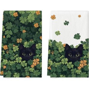 Artoid Mode Clover Black Cat St. Patrick’s Day Kitchen Towels Dish Towels, 18×26 Inch Farmhouse Holiday Spring Decoration Hand Towels Set of 2