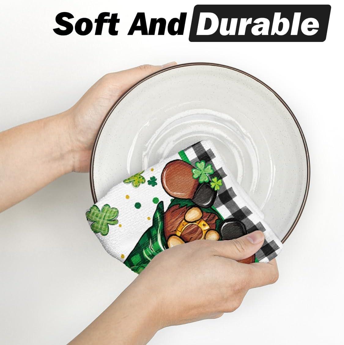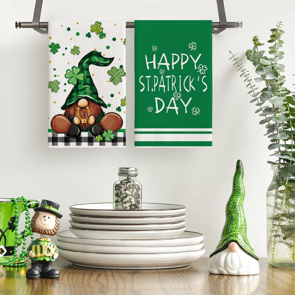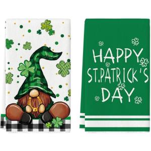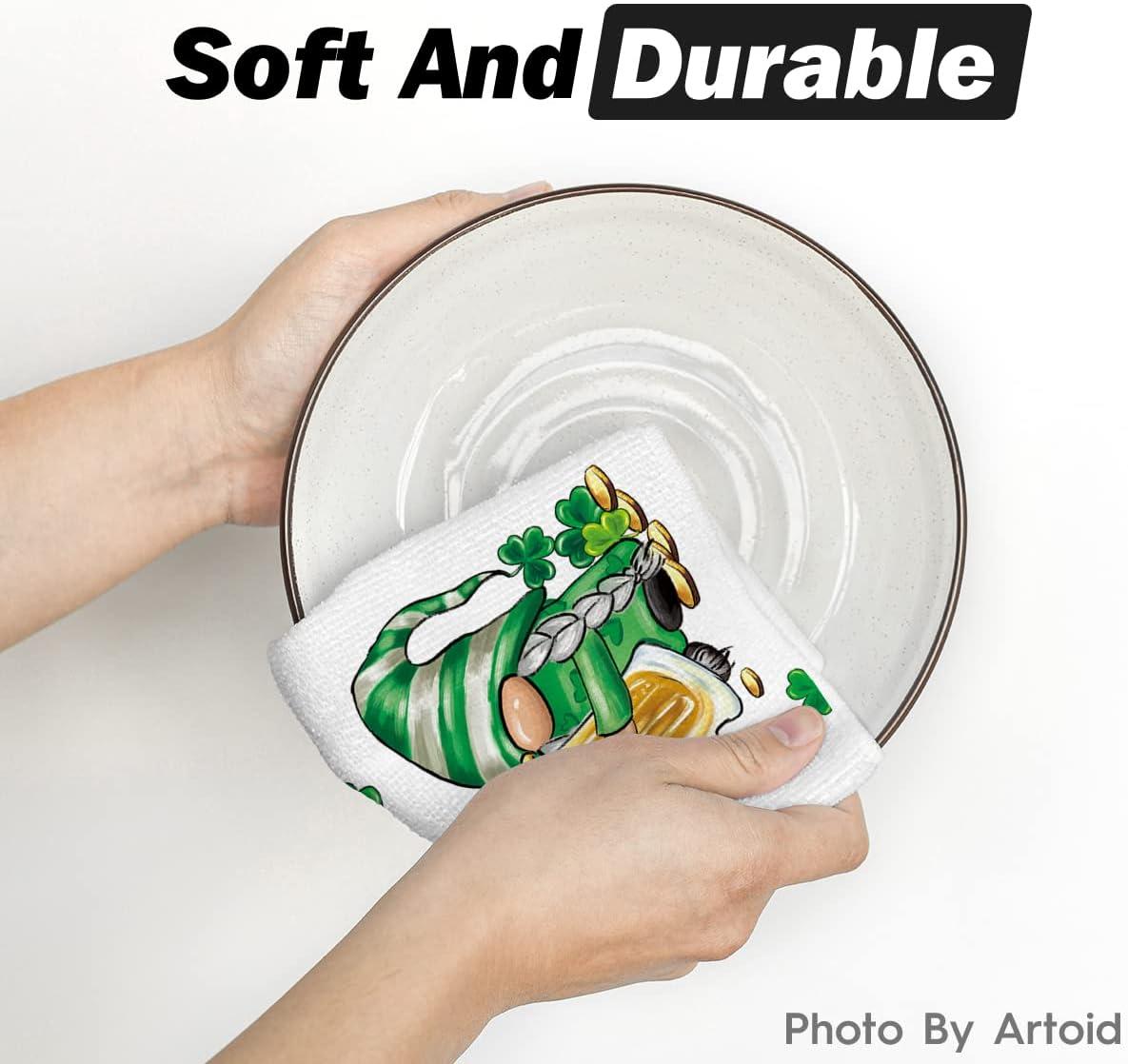 Artoid Mode Gnome Shamrock Happy St. Patrick’s Day Kitchen Towels Dish Towels, 18×26 Inch Seasonal Decoration Hand Towels Set of 2