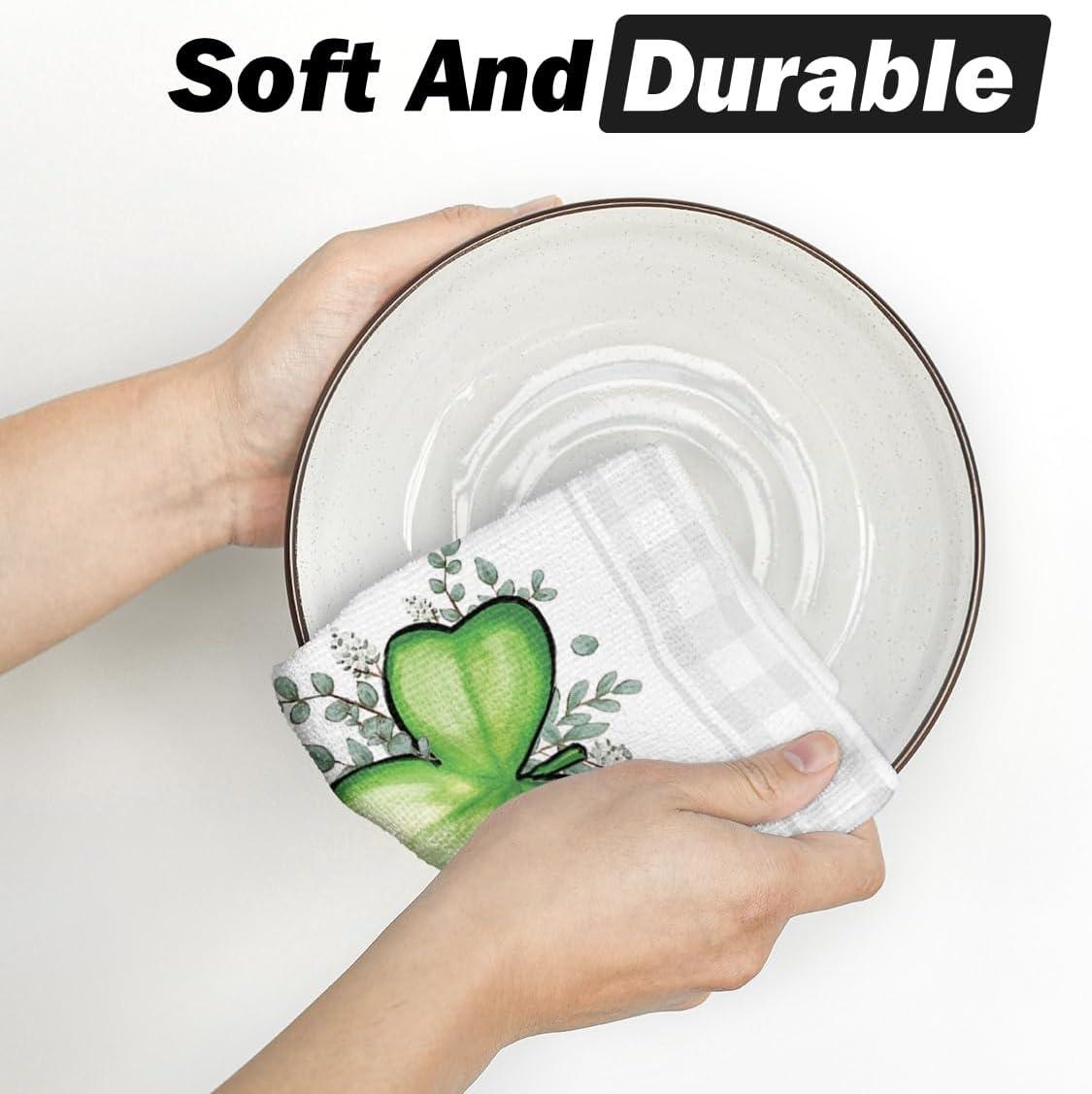 Artoid Mode Lucky Shamrock Eucalyptus St. Patrick’s Day Kitchen Towels Dish Towels, 18×26 Inch Seasonal Buffalo Plaid Decoration Hand Towels Set of 2