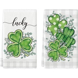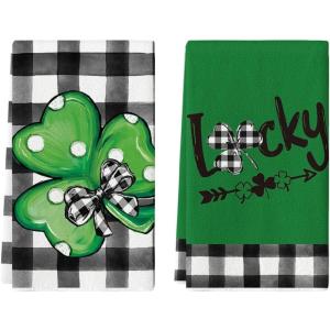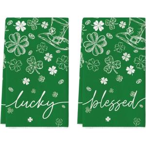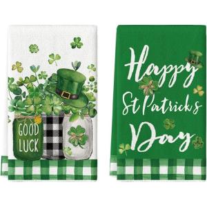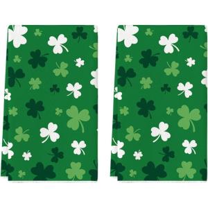 Artoid Mode Green Clover Shamrock Lucky St. Patrick’s Day Dish Towels Kitchen Towels, 18×26 Inch Holiday Decoration Seasonal Hand Towels Set of 2
