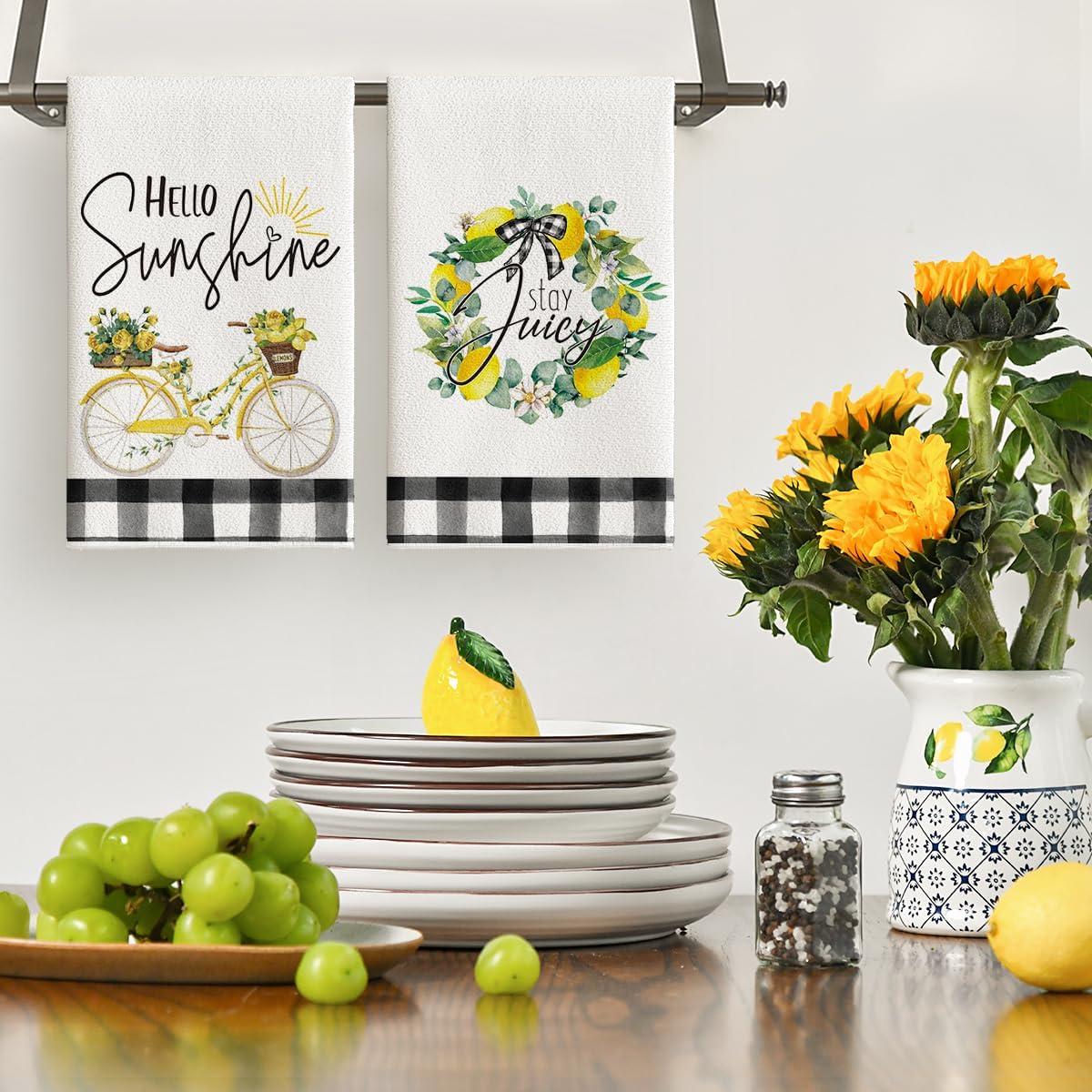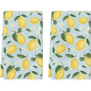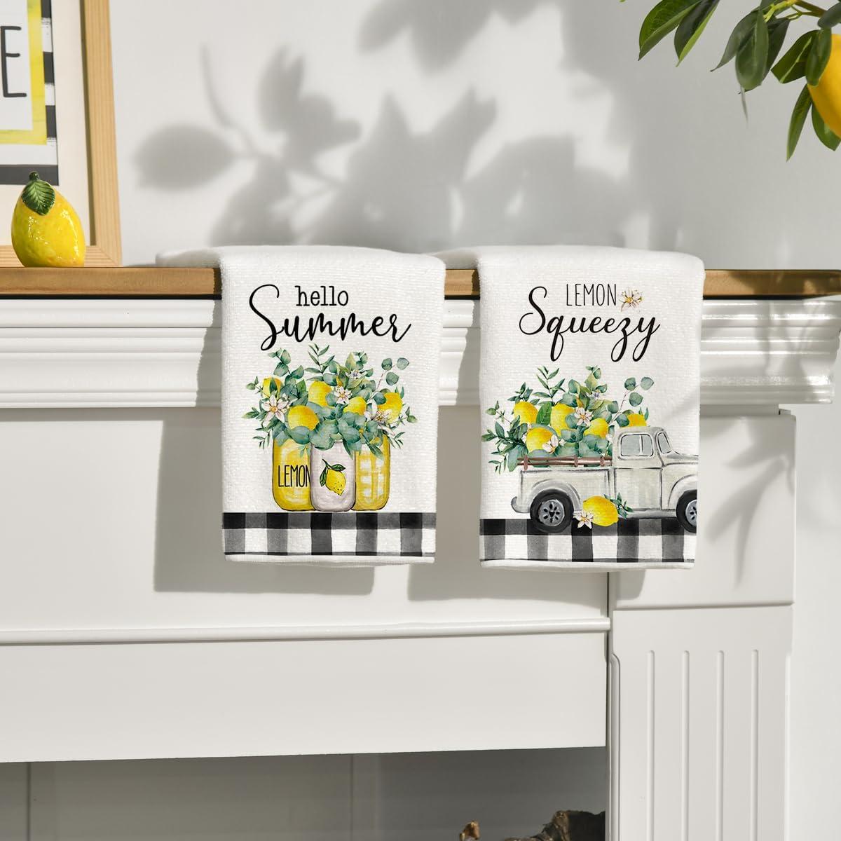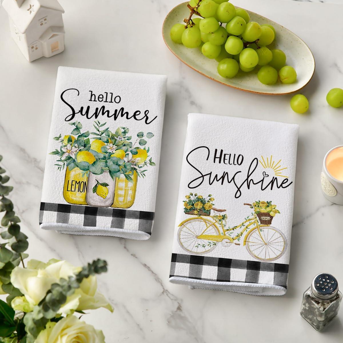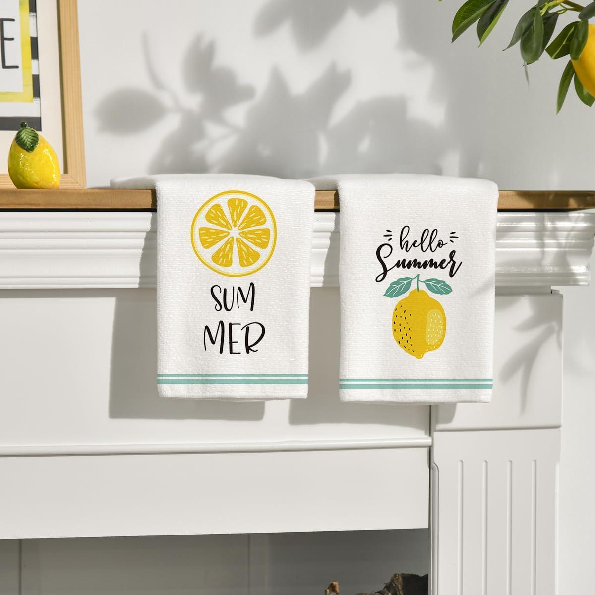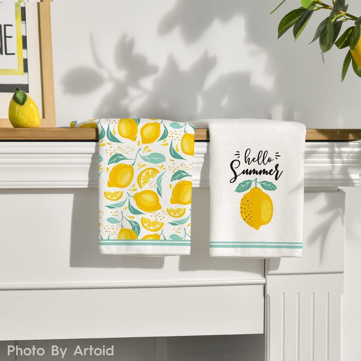 Artoid Mode Hello Summer Lemons Kitchen Dish Towels, 18 x 26 Inch Seasonal Summer Fruit Ultra Absorbent Drying Cloth Tea Towels for Cooking Baking Set of 2