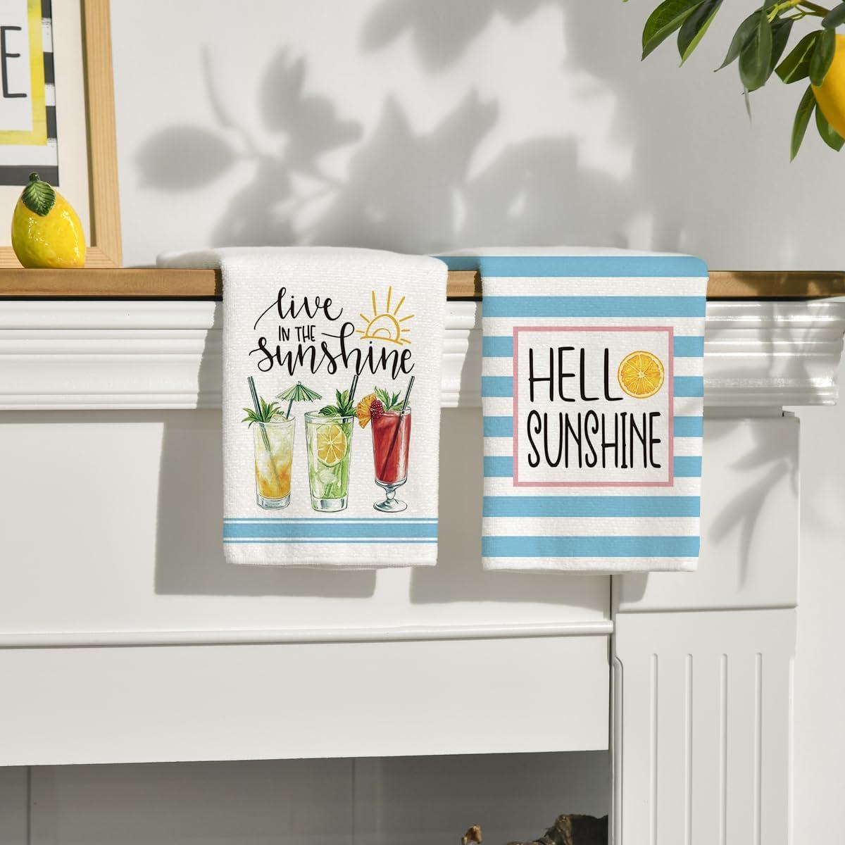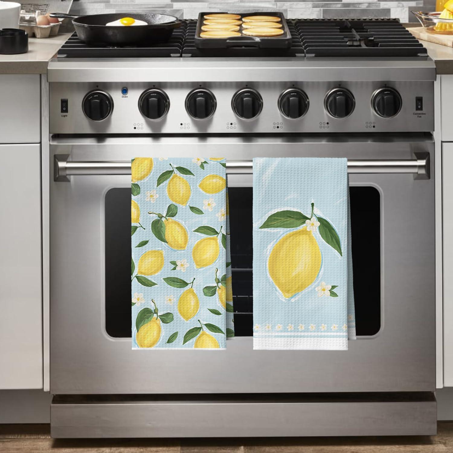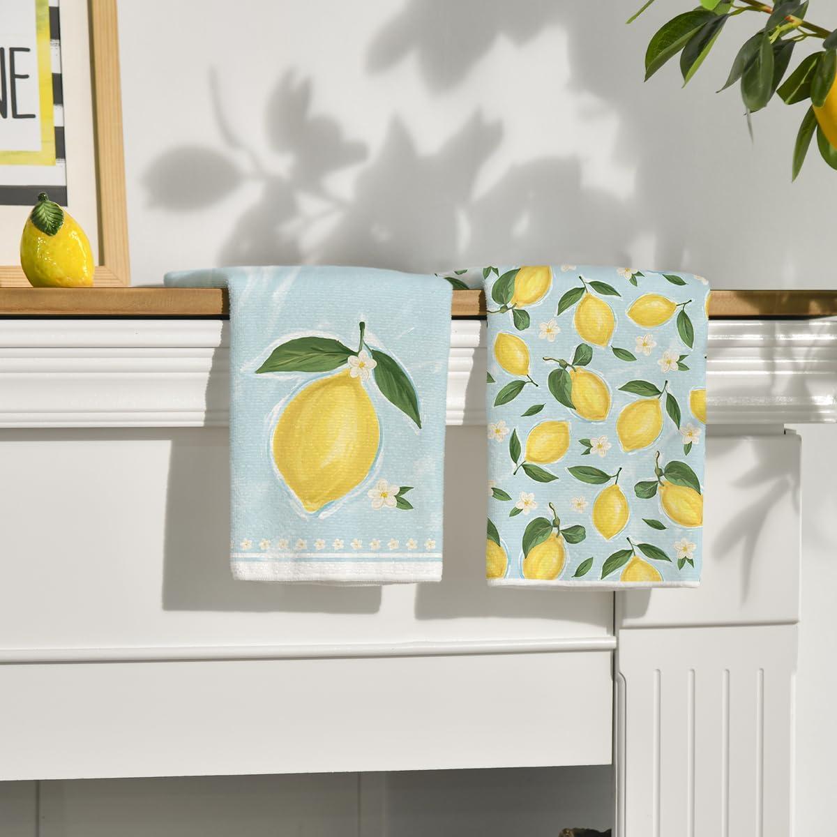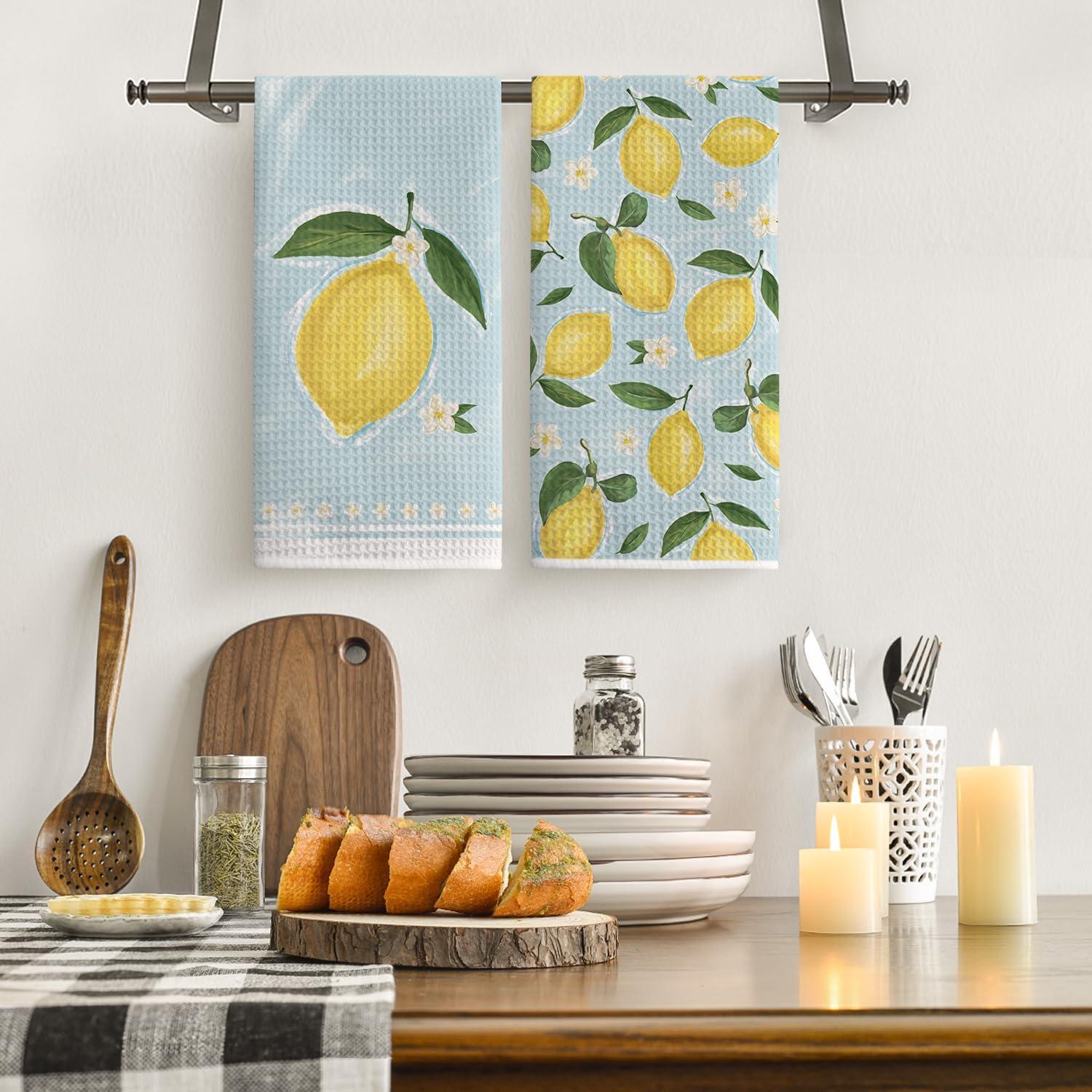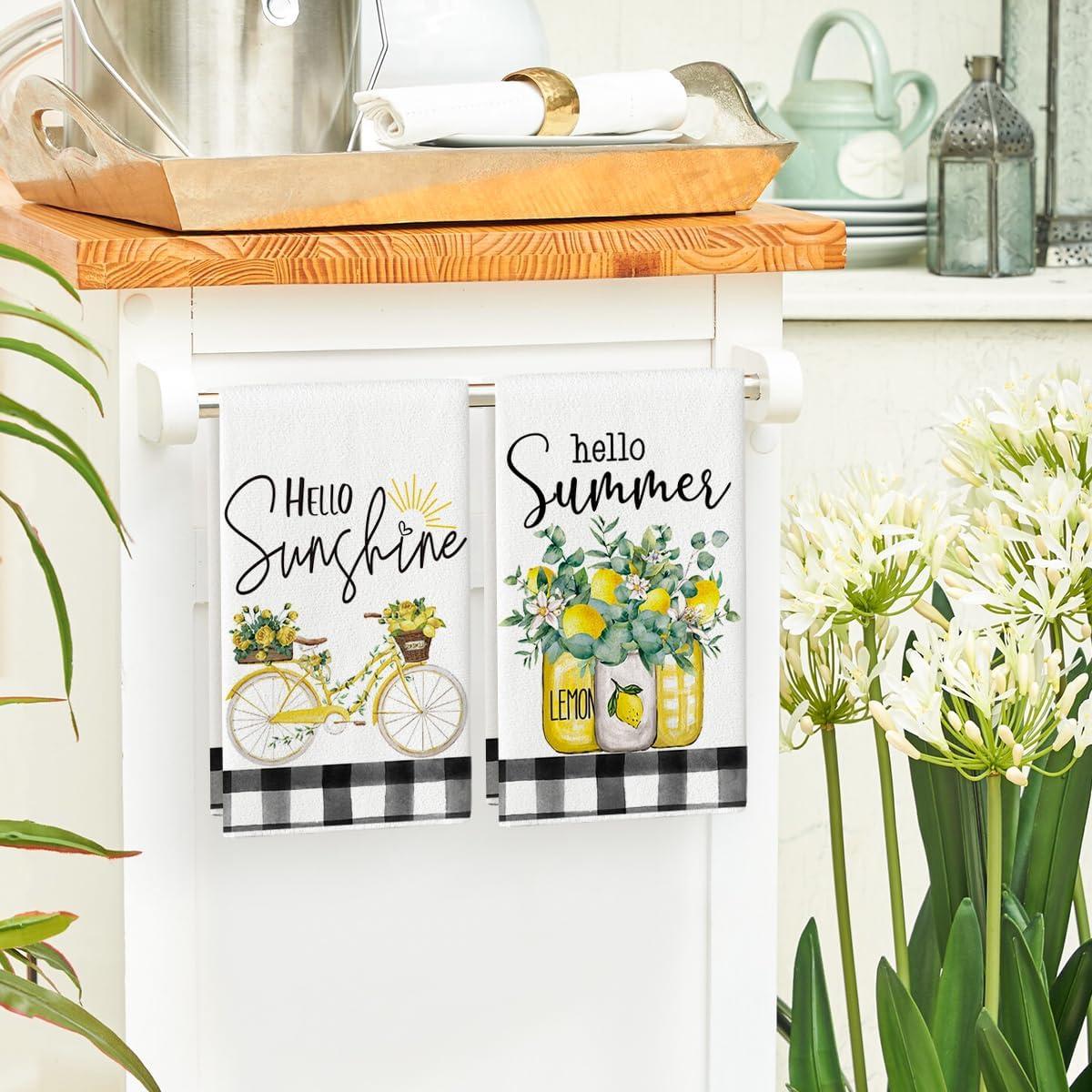 Artoid Mode Hello Summer Lemons Kitchen Dish Towels, 18 x 26 Inch Seasonal Summer Fruit Ultra Absorbent Drying Cloth Tea Towels for Cooking Baking Set of 2