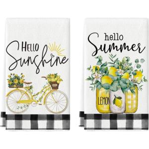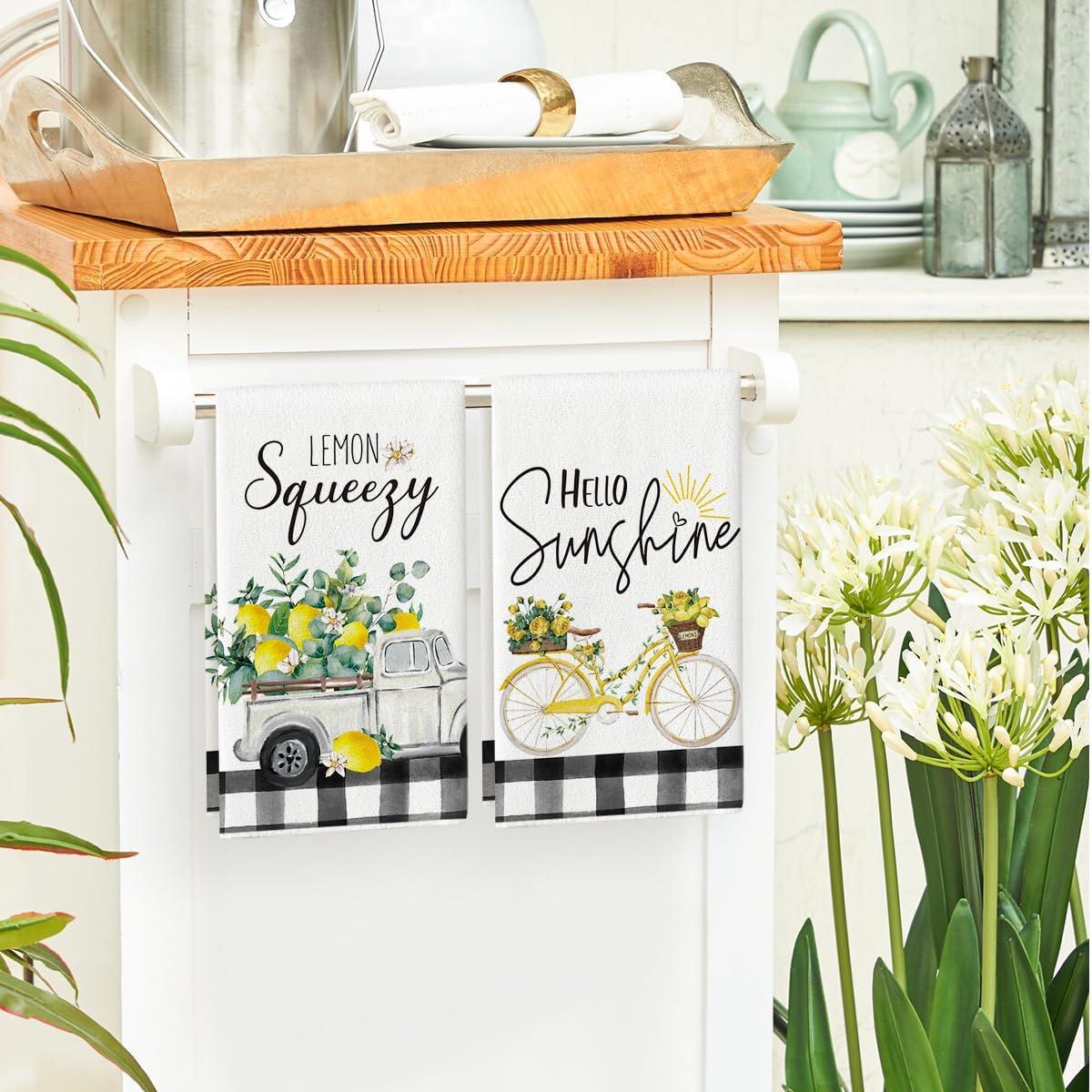 Artoid Mode Hello Sunshine Bike Lemons Summer Kitchen Towels Dish Towels, 18×26 Inch Farmhouse Summer Decoration Hand Towels Set of 2