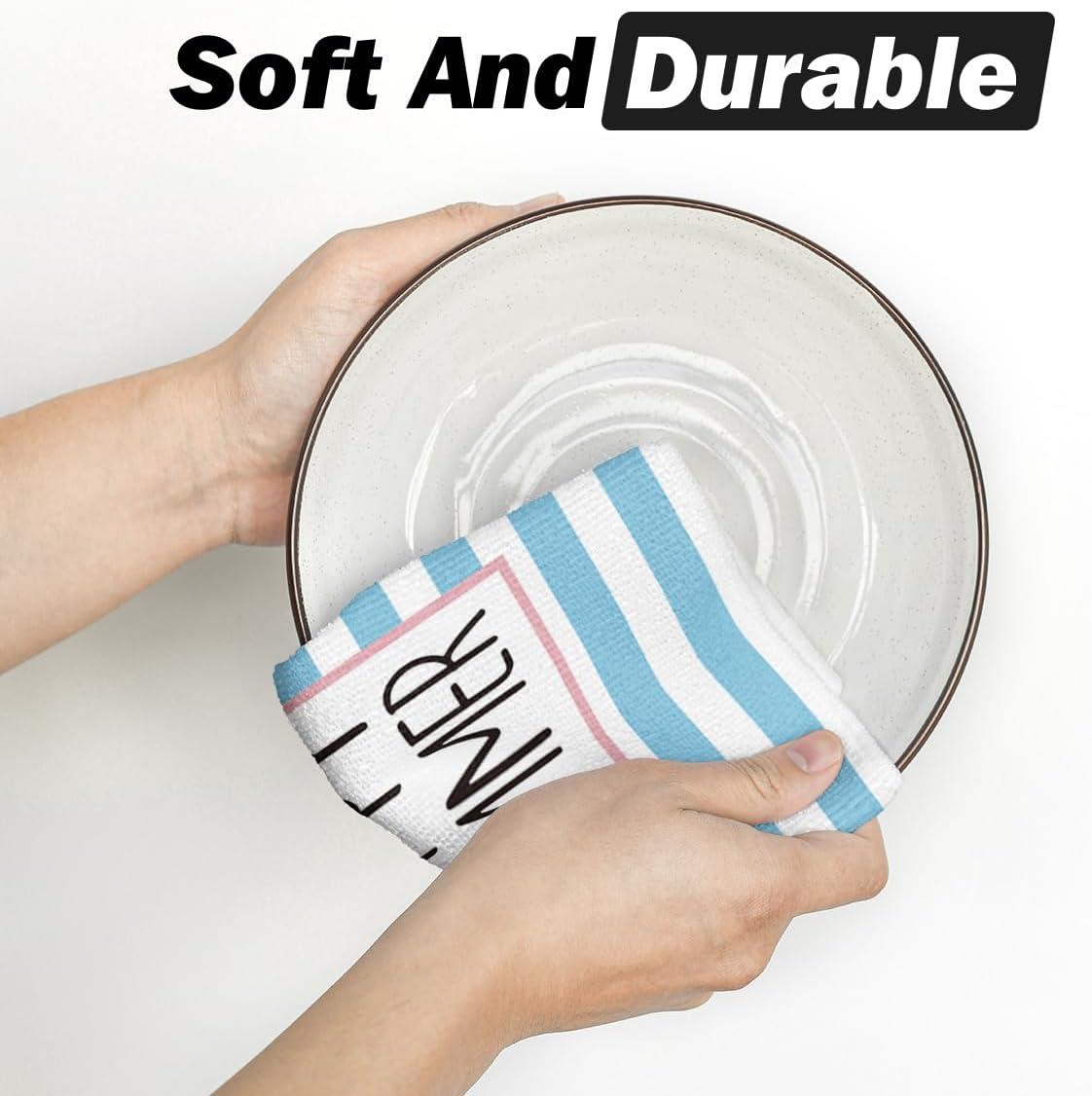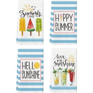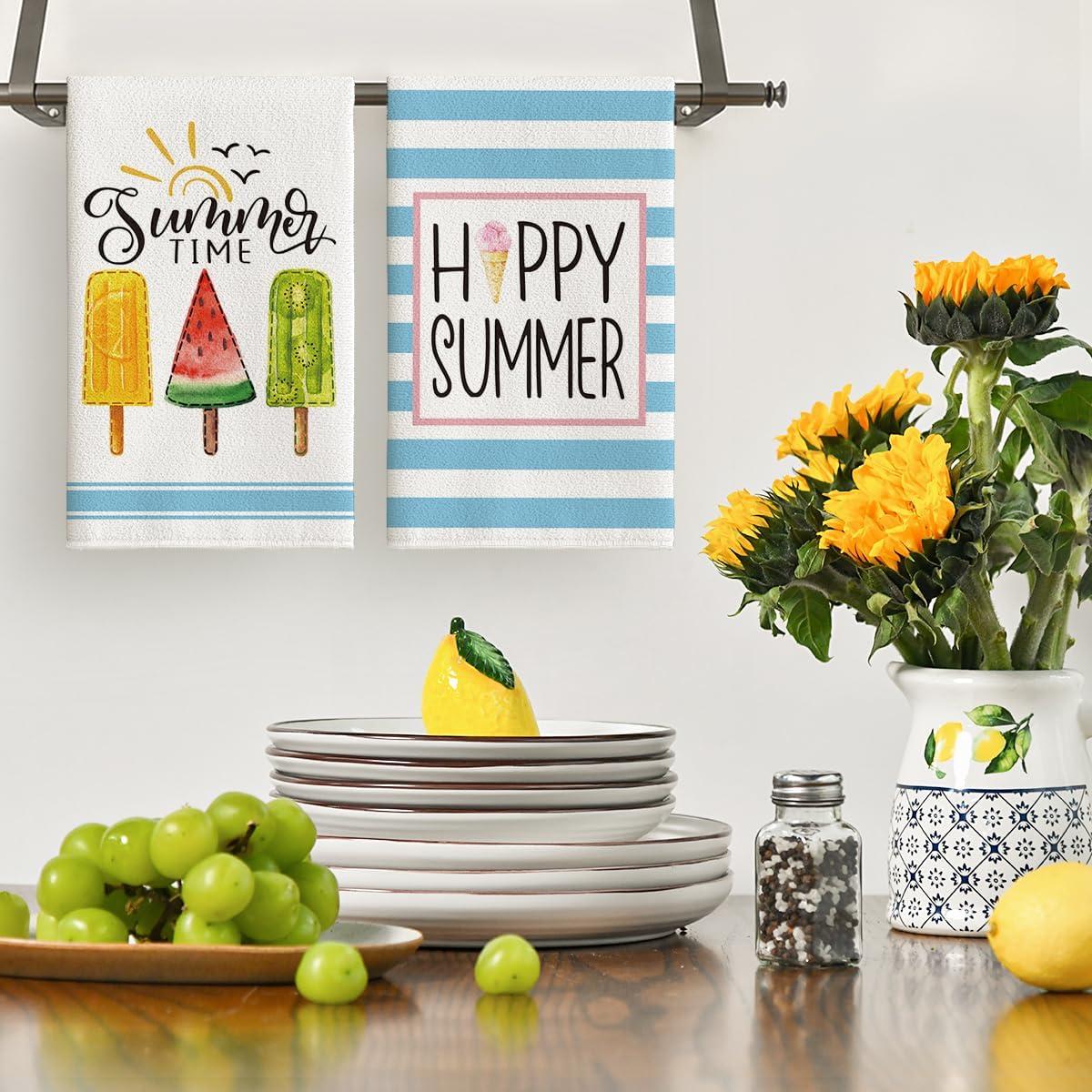 Artoid Mode Blue Stripe Popsicles Fruit Juice Happy Summer Kitchen Towels Dish Towels, 18×26 Inch Farmhouse Decoration Hand Towels Set of 4