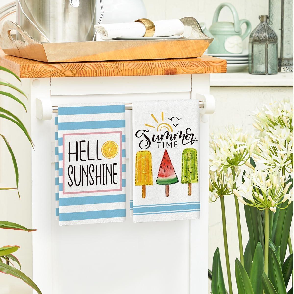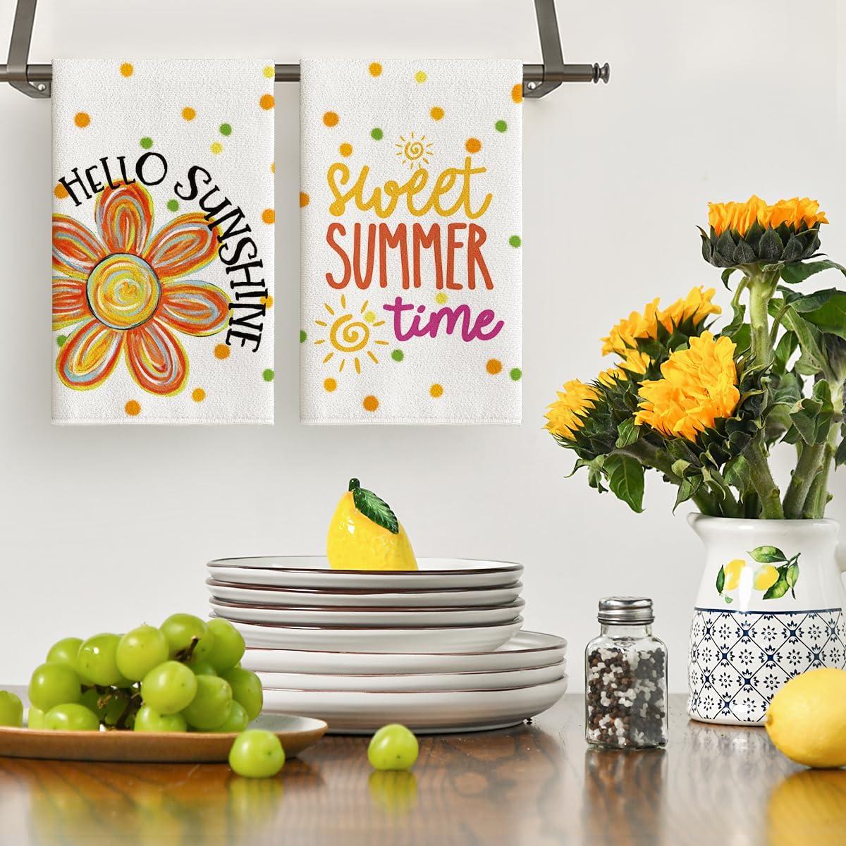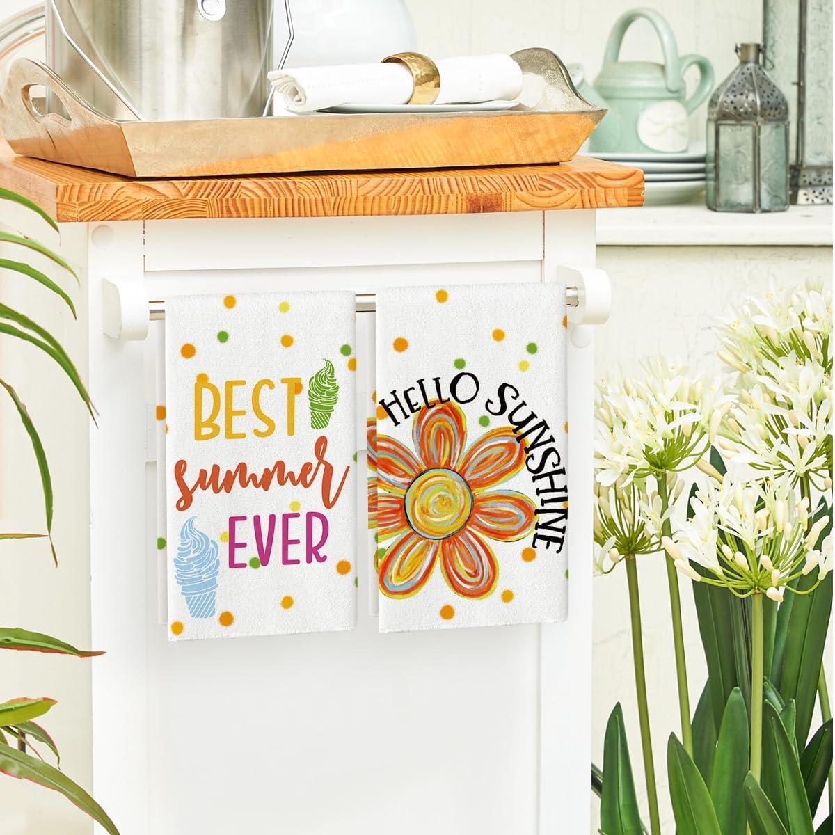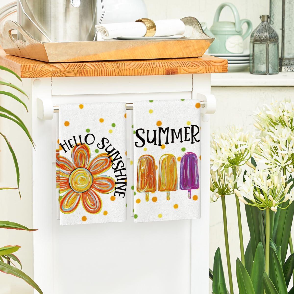 Artoid Mode Dots Popsicles Flowers Summer Kitchen Towels Dish Towels, 18×26 Inch Farmhouse Hello Sunshine Decoration Hand Towels Set of 2
