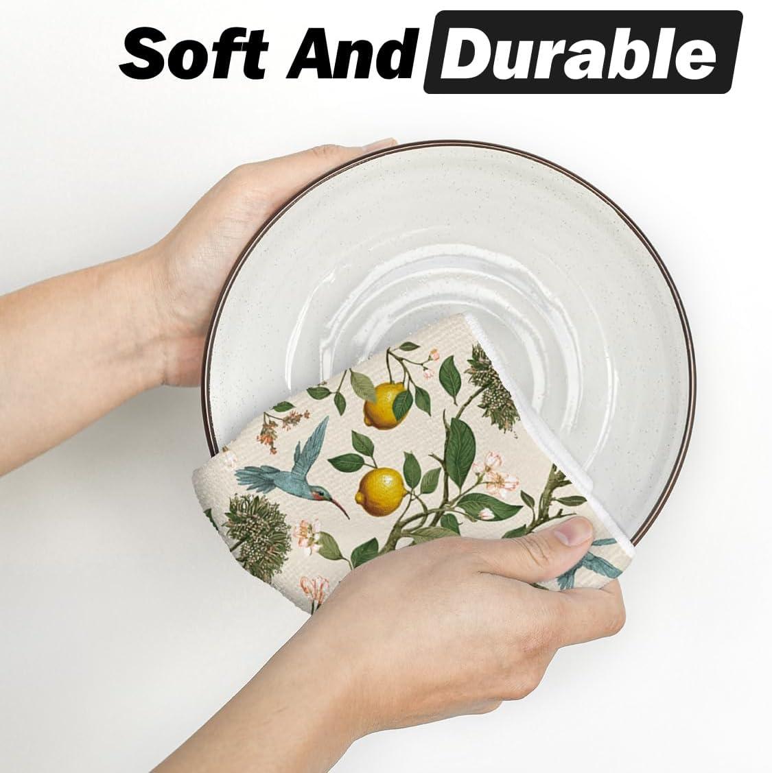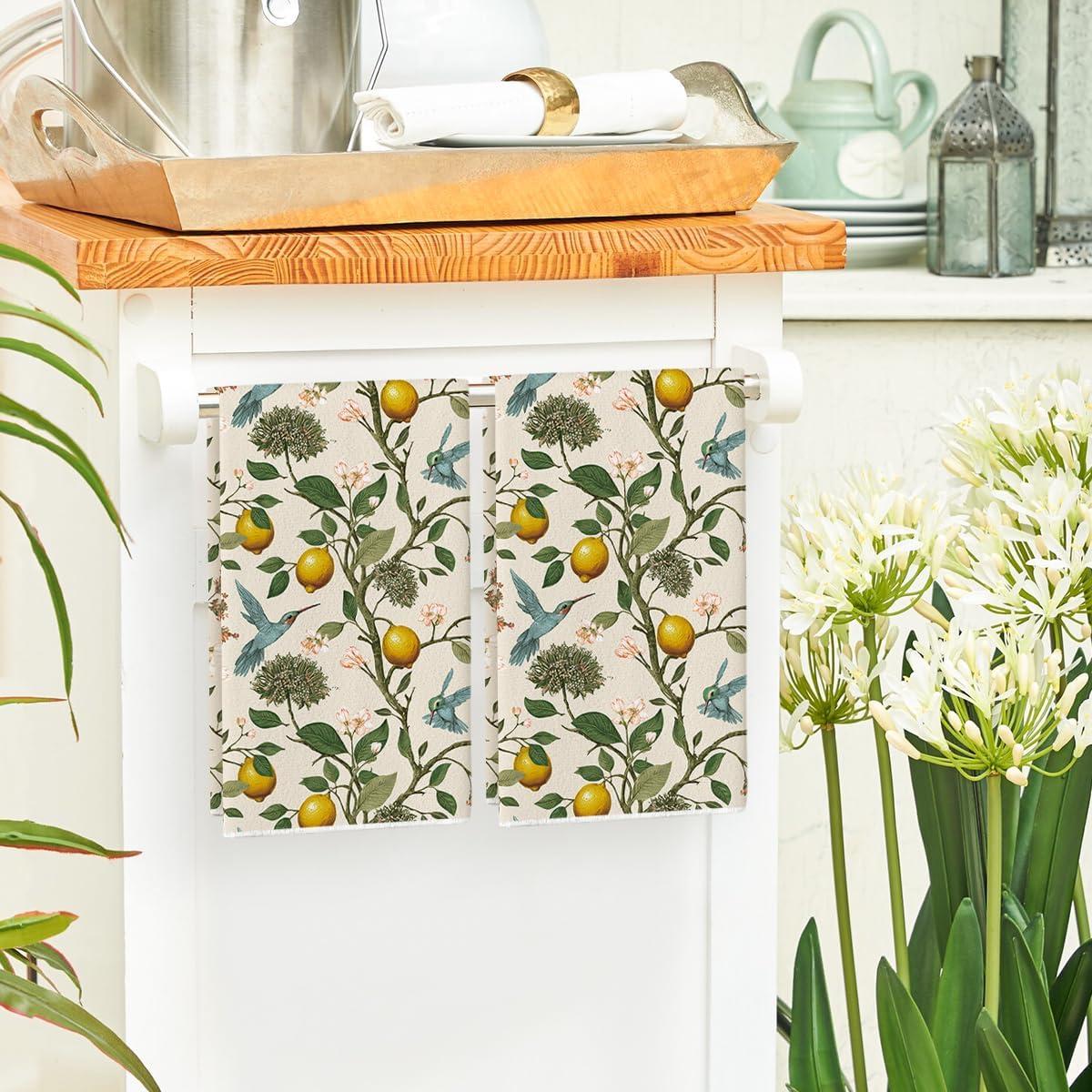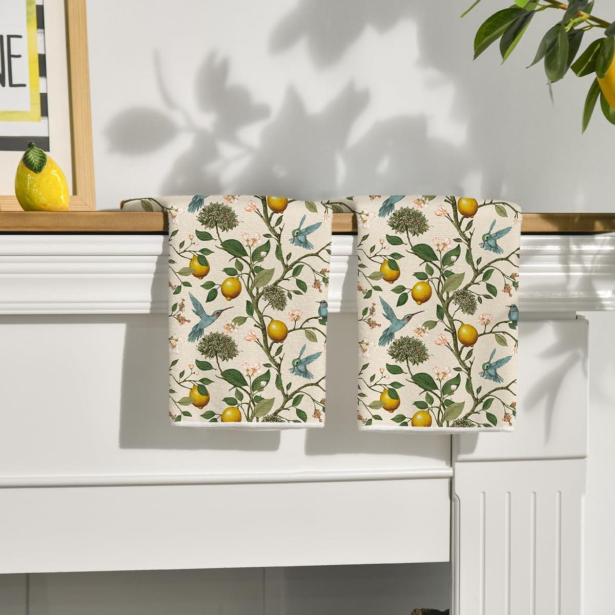 Artoid Mode Brown Lemon Tree Bird Flower Summer Kitchen Towels Dish Towels, 18×26 Inch Seasonal Fall Decoration Hand Towels Set of 2