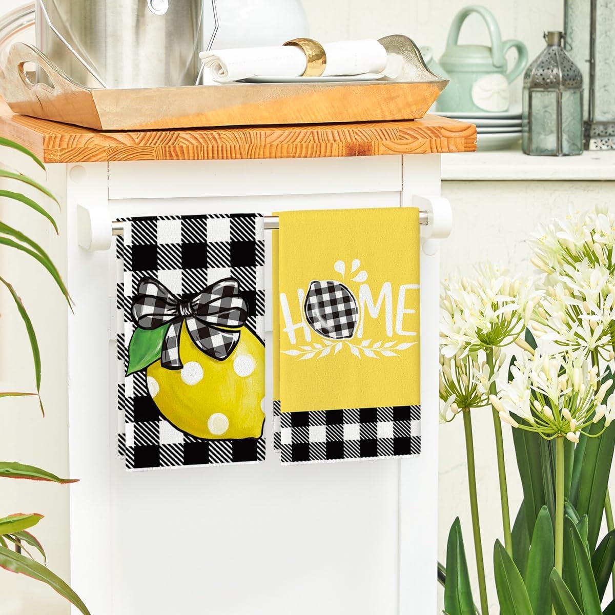 Artoid Mode Buffalo Plaid Bow Tie Lemon Home Summer Kitchen Towels Dish Towels, 18×26 Inch Seasonal Spring Decoration Hand Towels Set of 2
