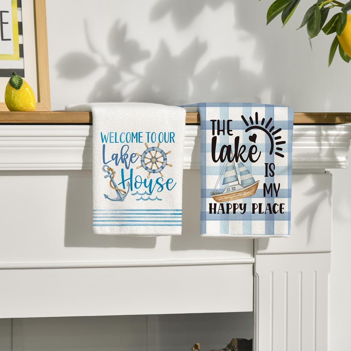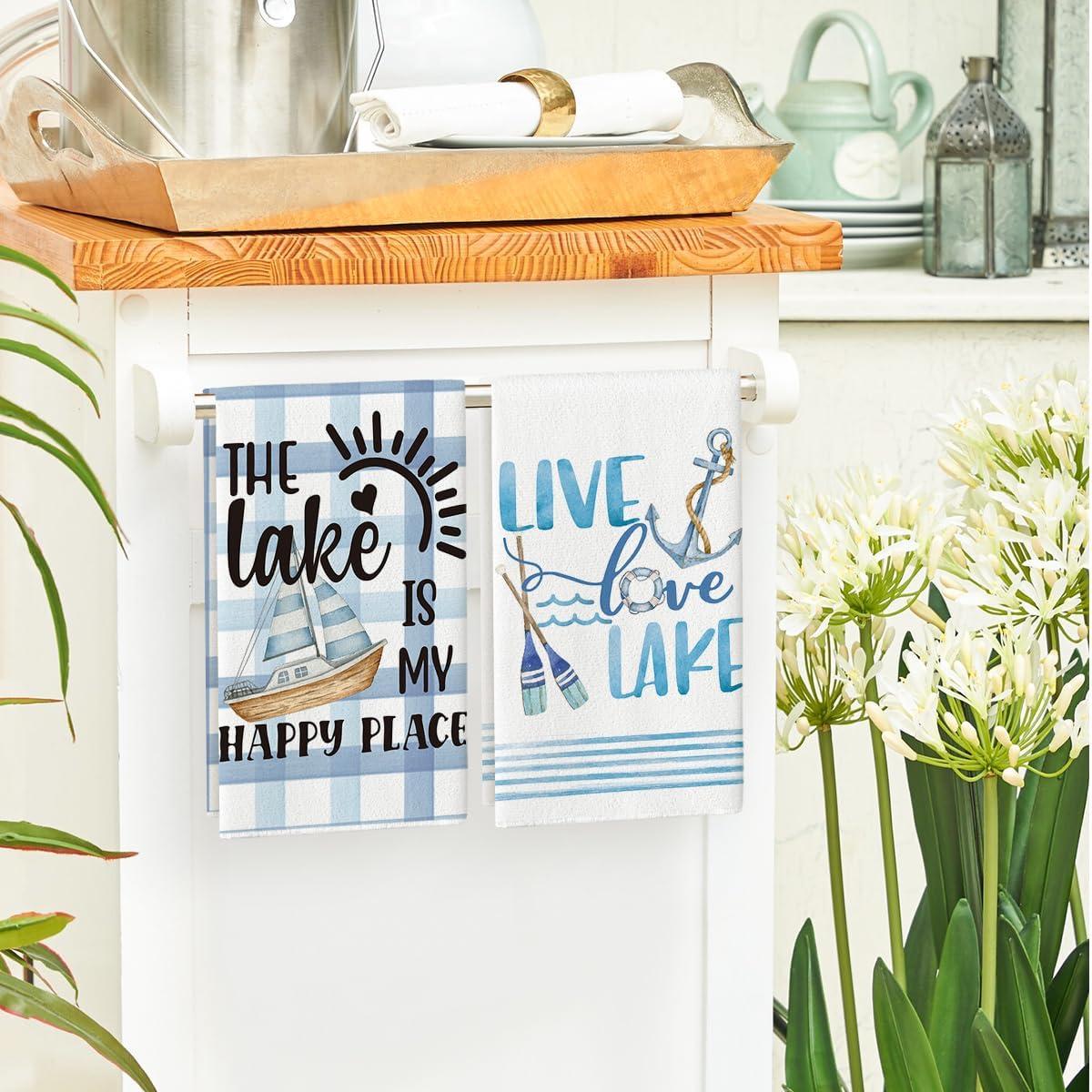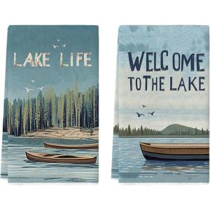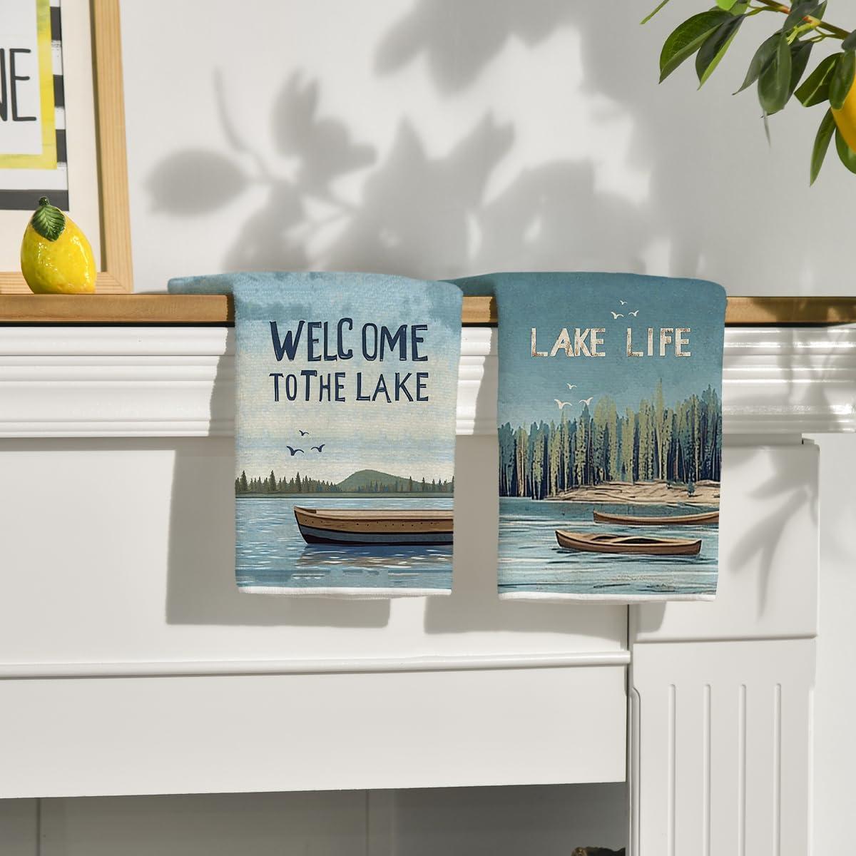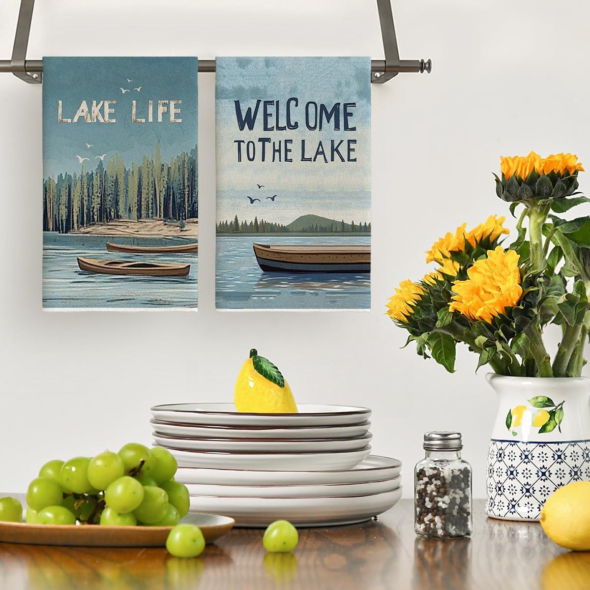 Artoid Mode Lake Life Boat Bird Summer Kitchen Towels Dish Towels, 18×26 Inch Tree Farmhouse Summer Seasonal Decoration Hand Towels Set of 2