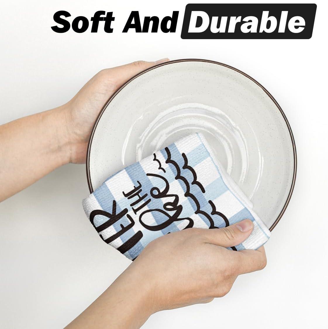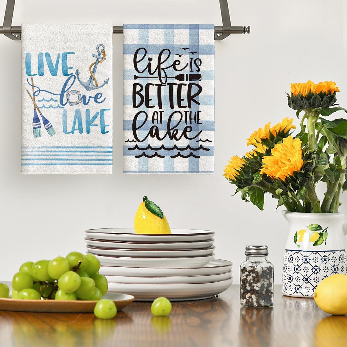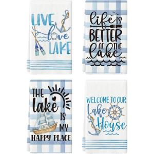 Artoid Mode Buffalo Plaid Stripes Anchors Lake Summer Kitchen Towels Dish Towels, 18×26 Inch Seasonal Decoration Hand Towels Set of 4