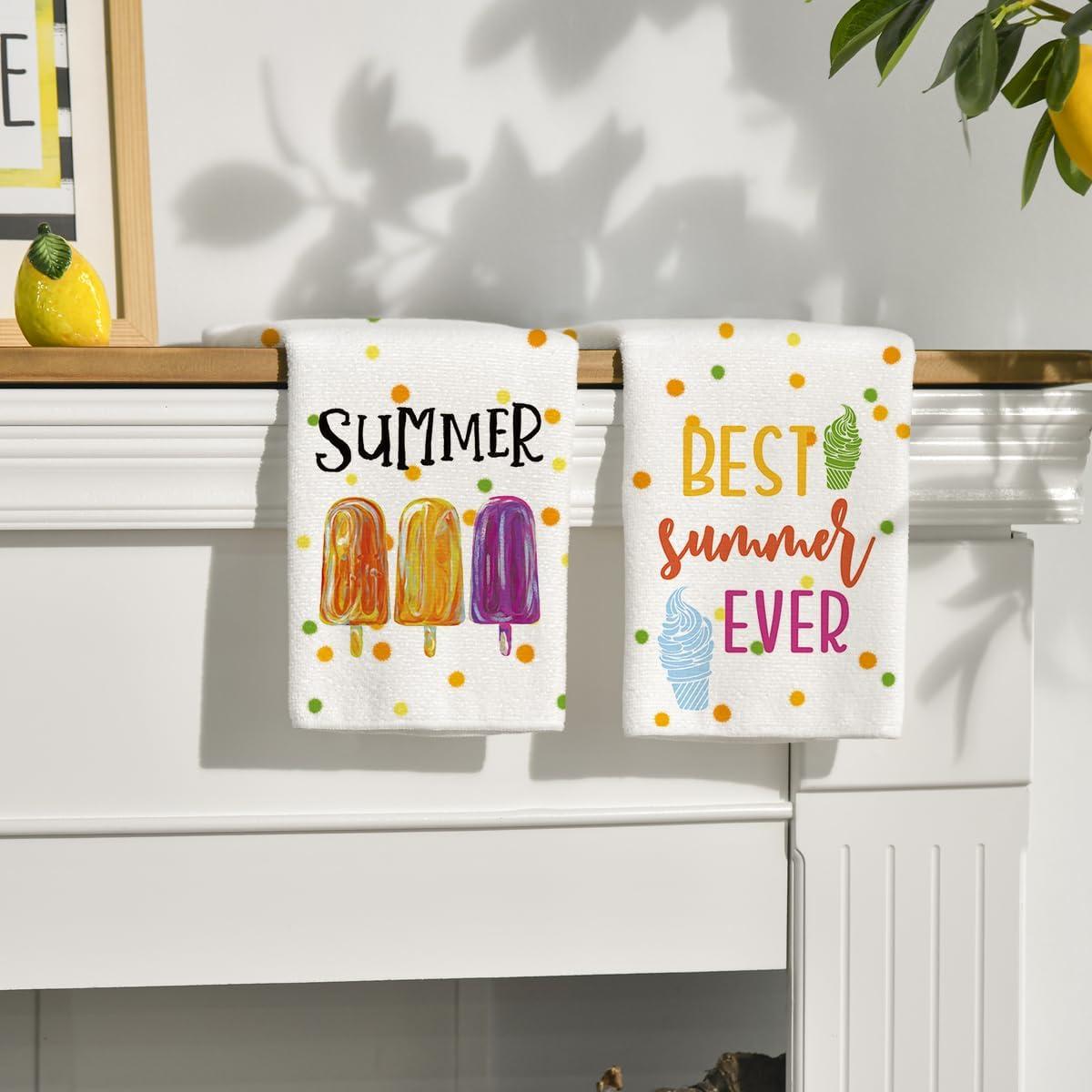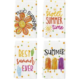 Artoid Mode Dots Popsicles Flowers Hello Sunshine Summer Kitchen Towels Dish Towels, 18×26 Inch Farmhouse Ice Cream Decoration Hand Towels Set of 4