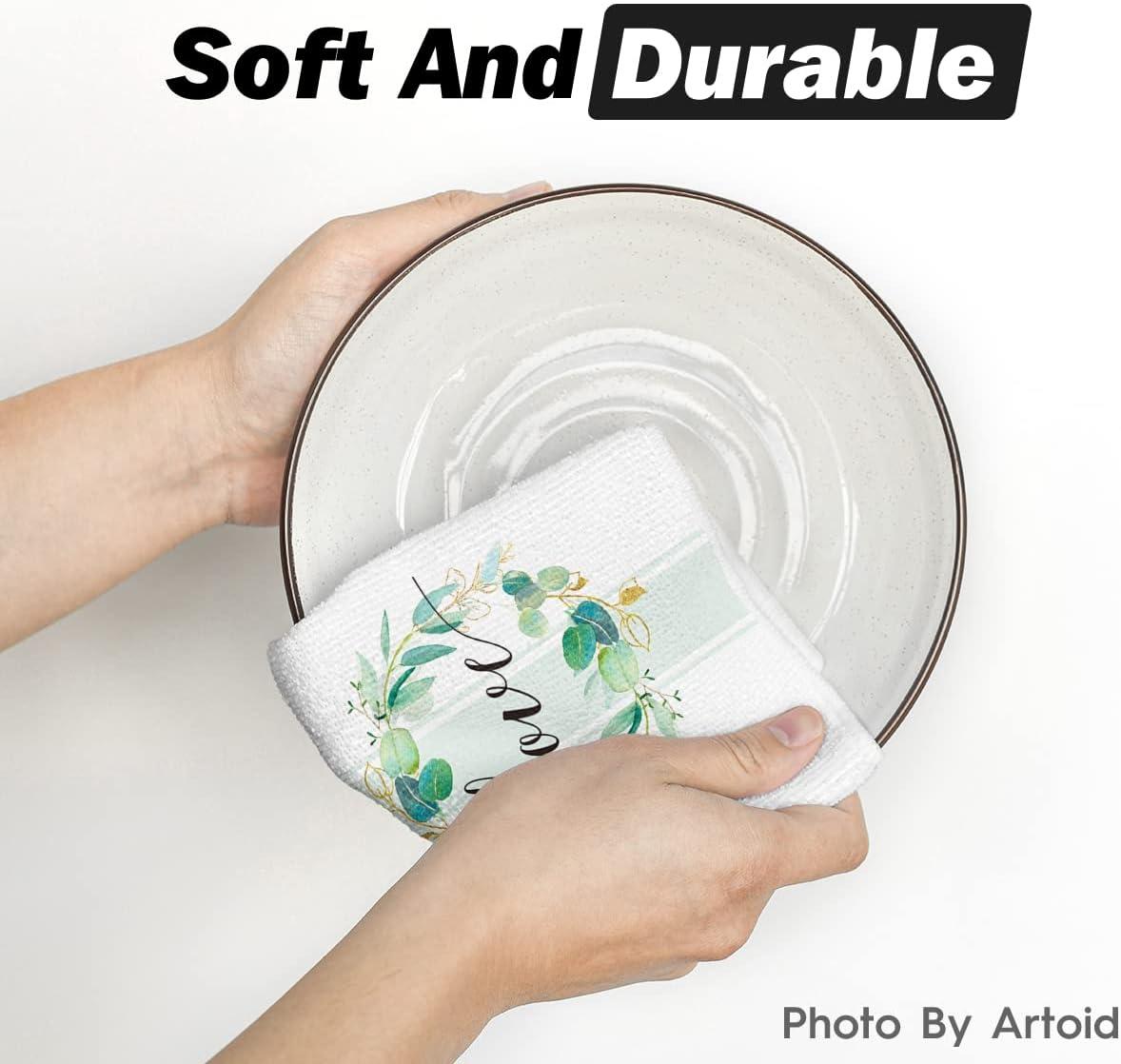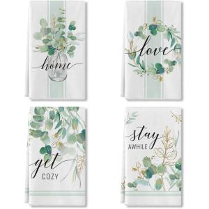 Artoid Mode Eucalyptus Get Cozy Love Home Kitchen Towels, 18 x 26 Inch Holiday Spring Summer Wedding Daily Fingertip Towel Tea Bar Hand Drying Cloth Kitchen Bathroom Gift Set of 4