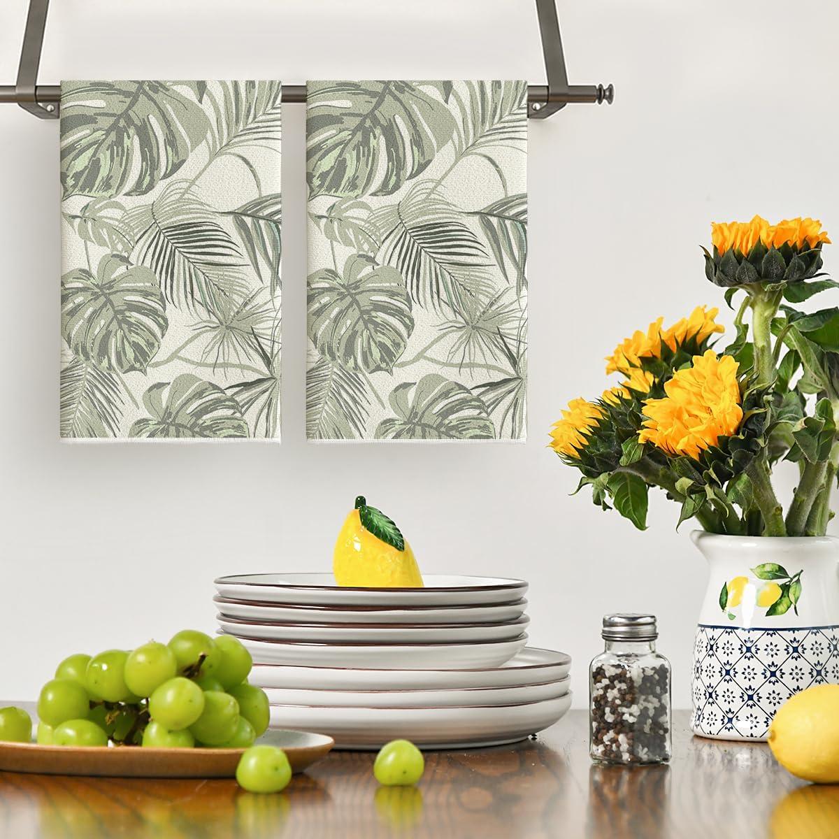 Artoid Mode Green Monstera Leaves Summer Kitchen Towels Dish Towels, 18×26 Inch Spring Farmhouse Decoration Hand Towels Set of 2