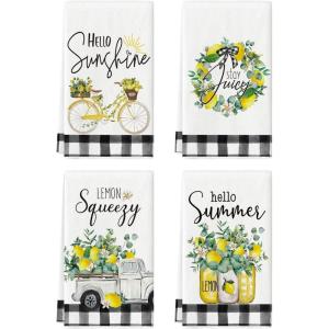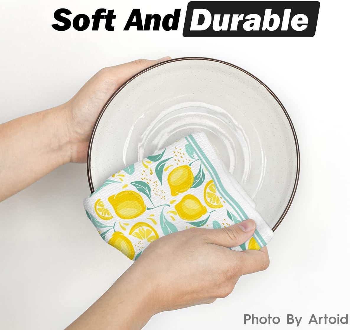 Artoid Mode It’s Summer Time Lemons Kitchen Dish Towels, 18 x 26 Inch Seasonal Summer Fruit Ultra Absorbent Drying Cloth Tea Towels for Cooking Baking Set of 4
