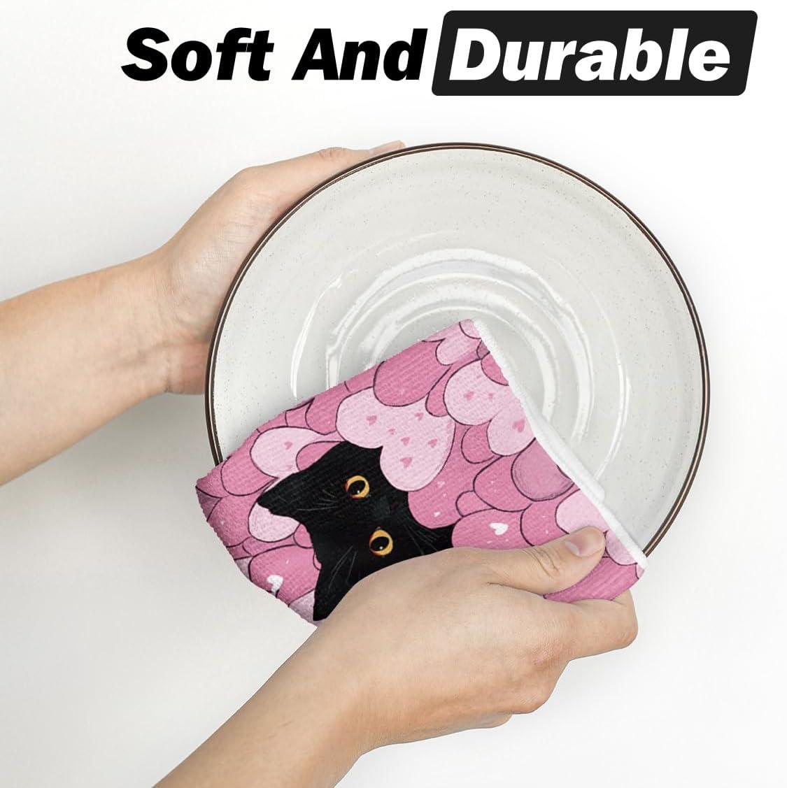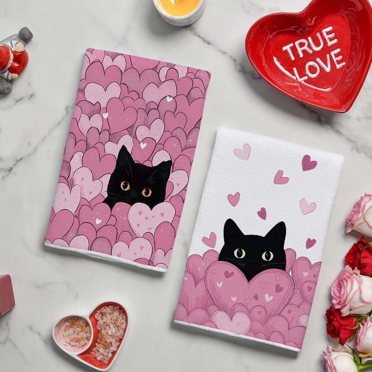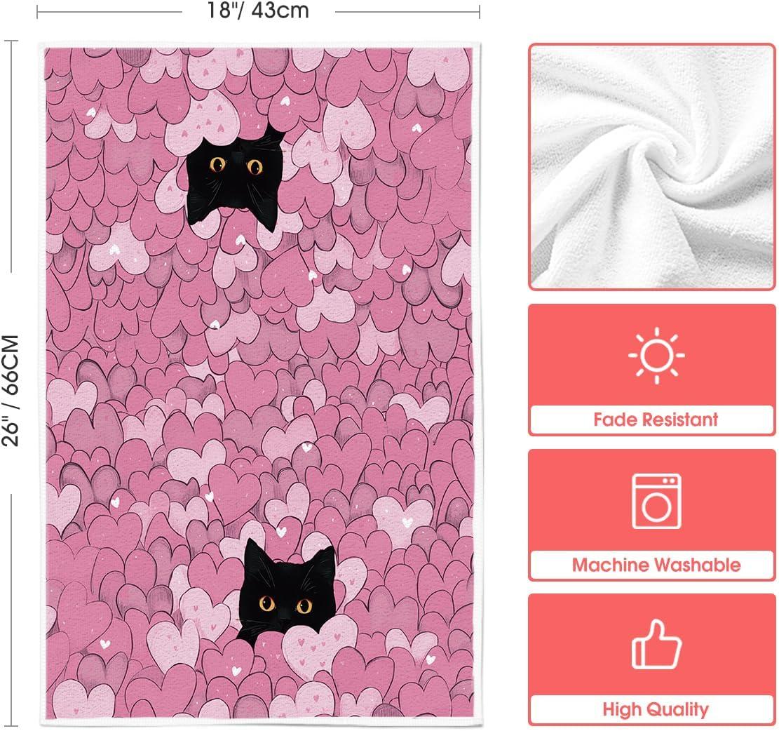 Artoid Mode Black Cats Red Hearts Valentine’s Kitchen Towels Dish Towels, 18×26 Inch Wedding Farmhouse Decoration Hand Towels Set of 2(Pink)