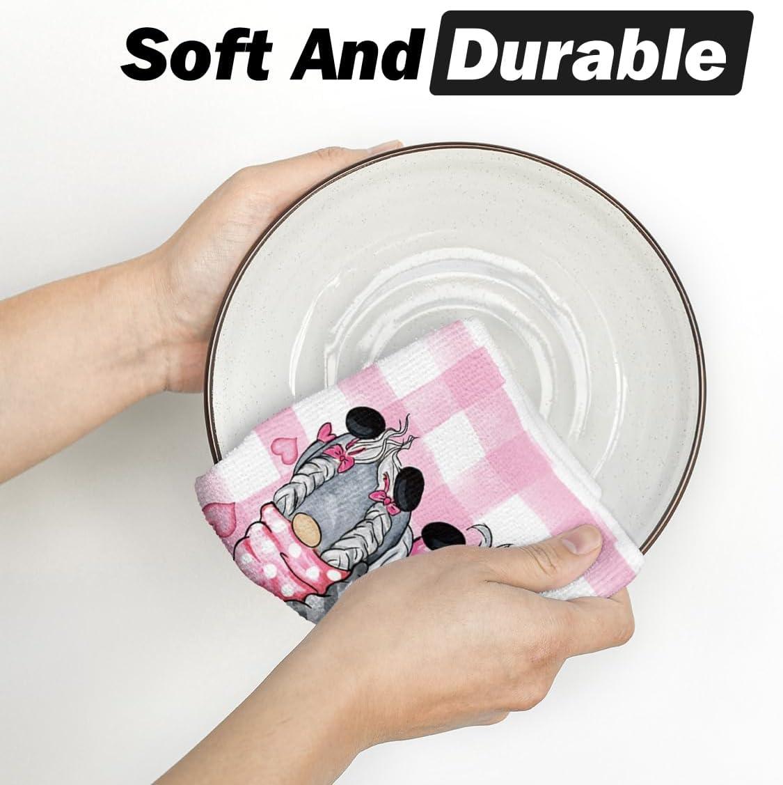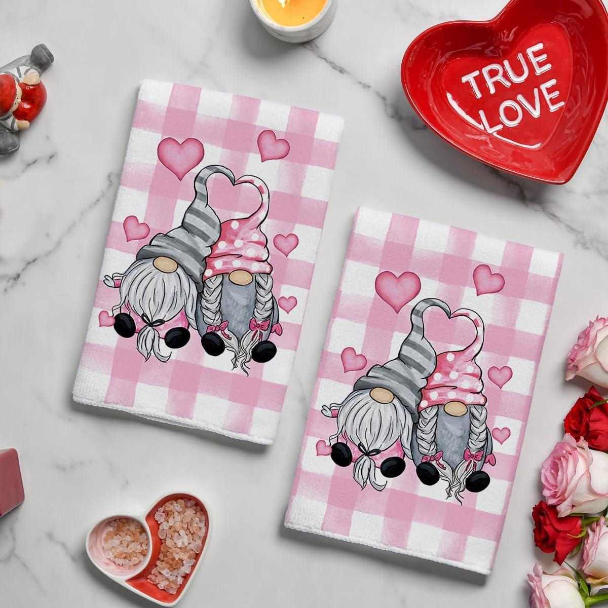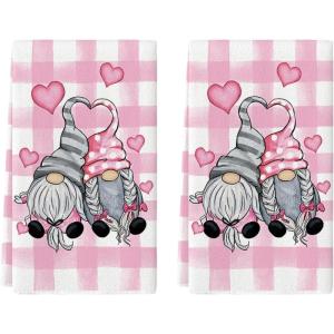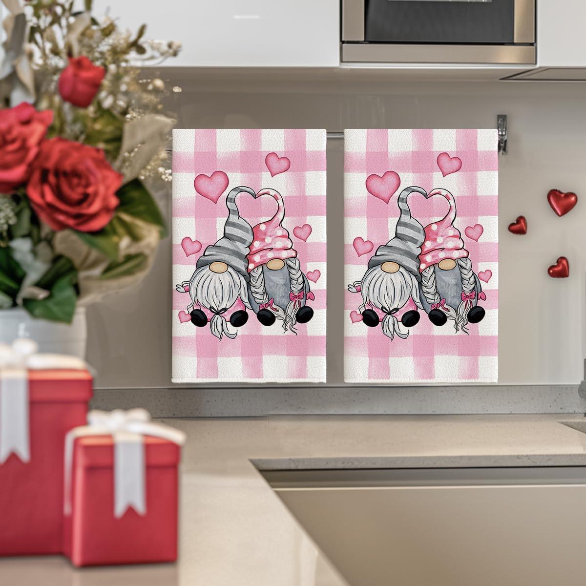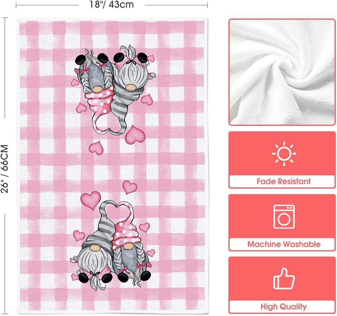 Artoid Mode Buffalo Plaid Gnomes Love Valentine’s Kitchen Towels Dish Towels, 18×26 Inch Anniversary Wedding Decoration Hand Towels Set of 2(Pink)
