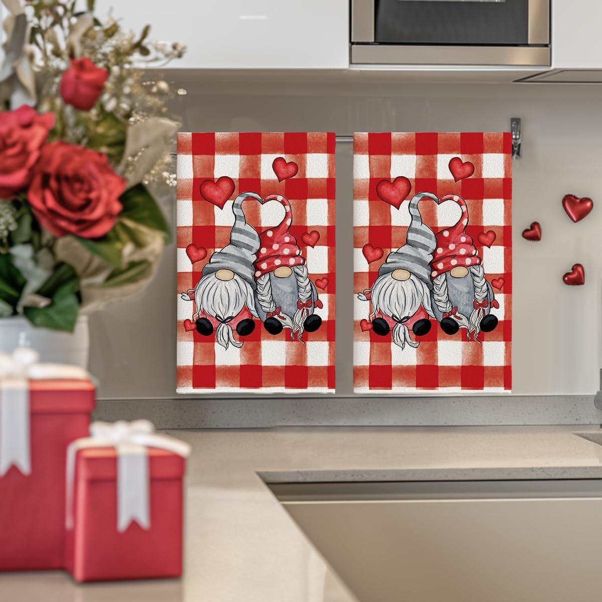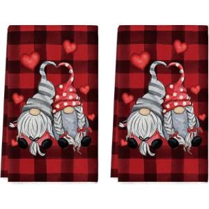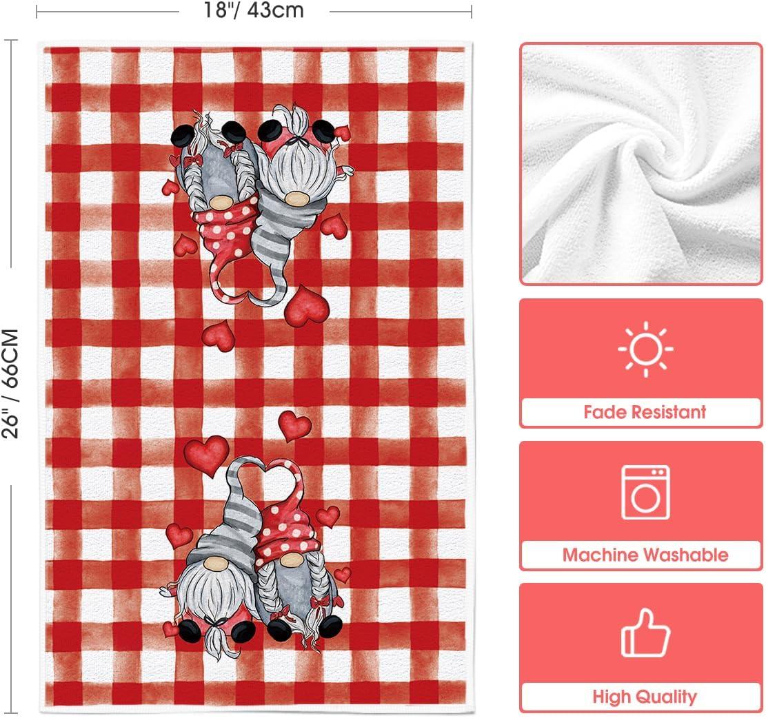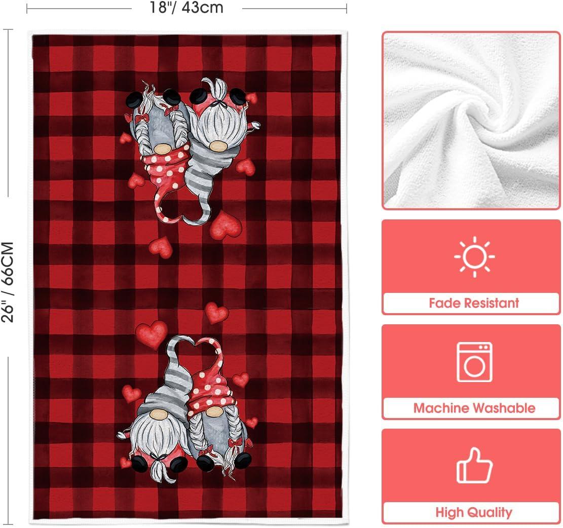 Artoid Mode Buffalo Plaid Gnomes Love Valentine’s Kitchen Towels Dish Towels, 18×26 Inch Anniversary Wedding Decoration Hand Towels Set of 2(Red/Black)