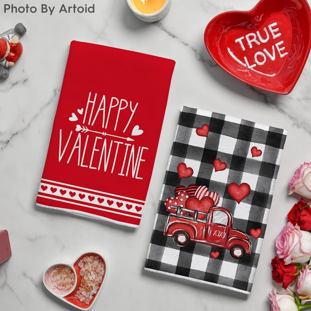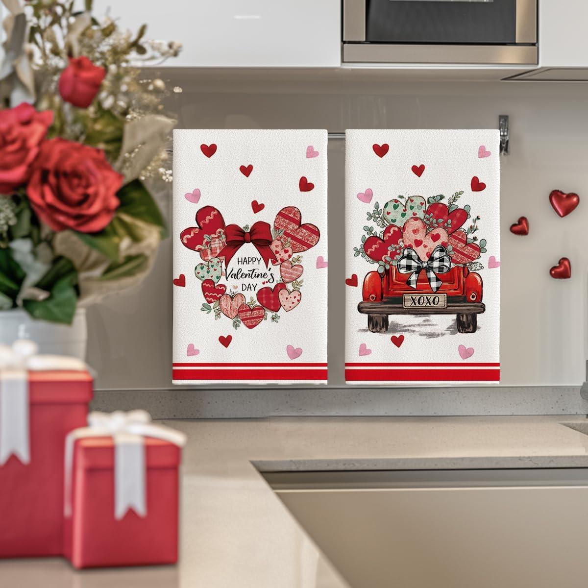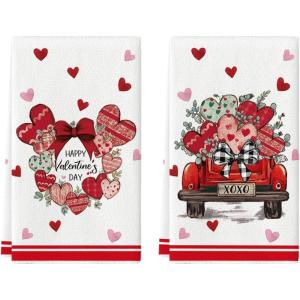 Artoid Mode Garland of Love Heart Truck Valentine’s Kitchen Towels Dish Towels, 18×26 Inch Anniversary Wedding Decoration Hand Towels Set of 2