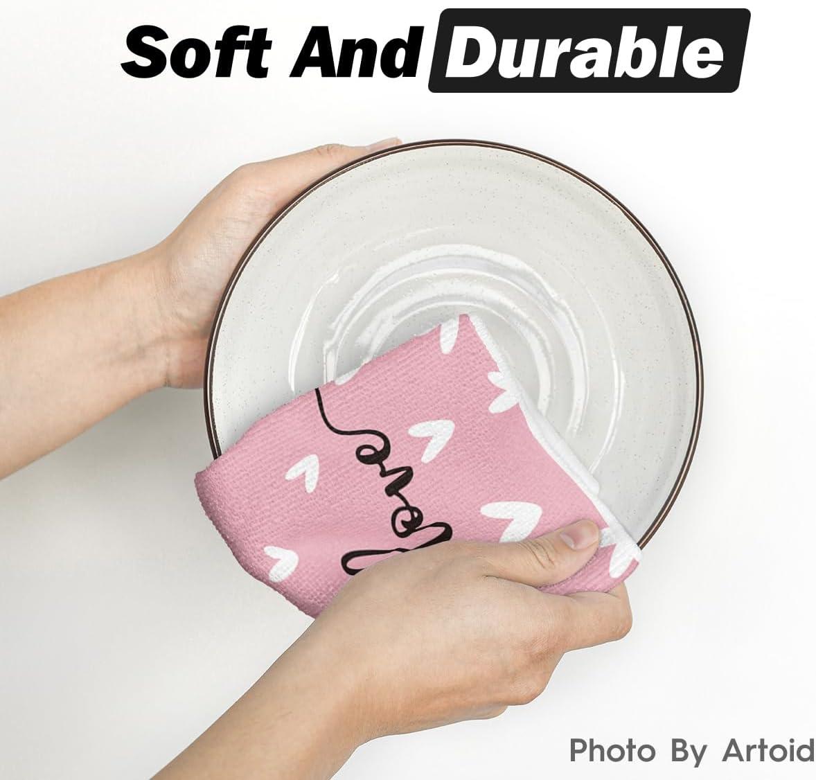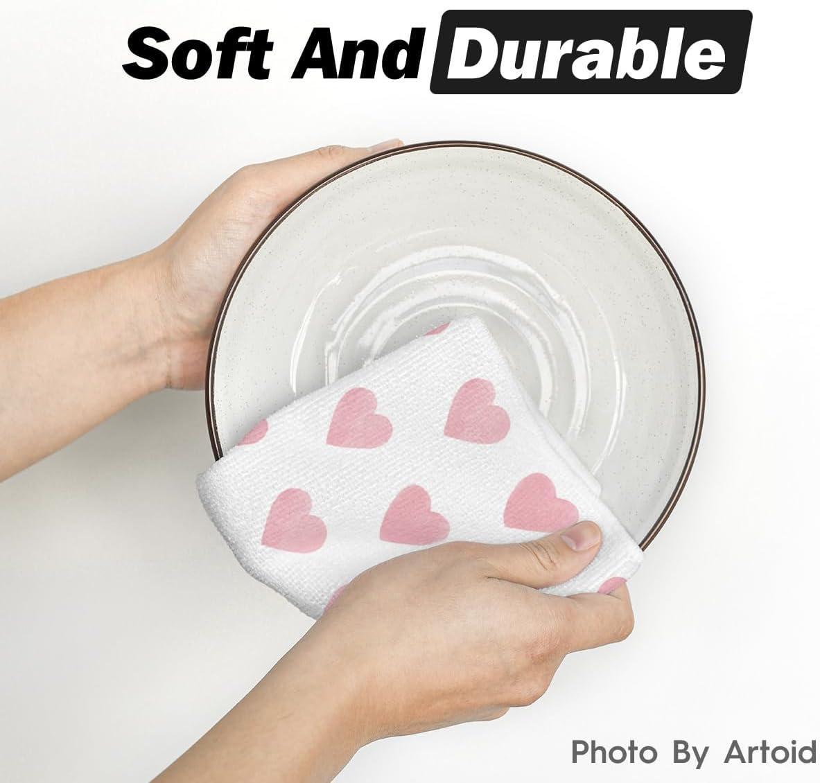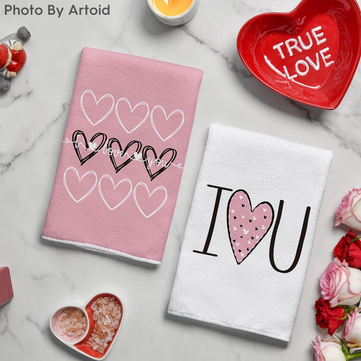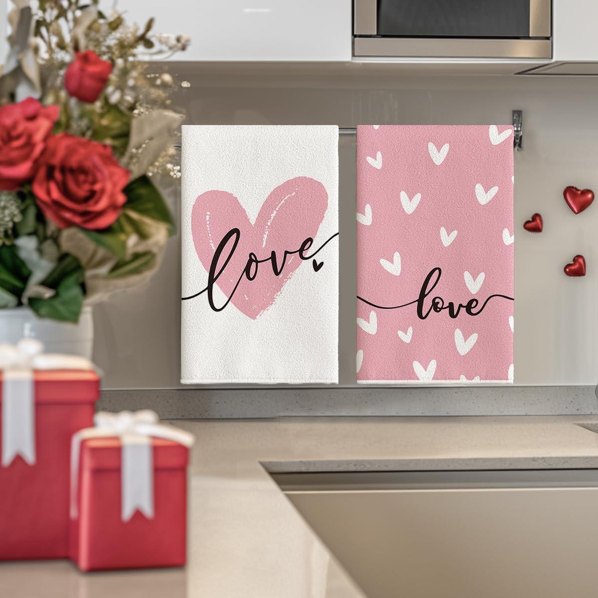 Artoid Mode Pink Heart Love Home Sweet Home Valentine’s Kitchen Towels Dish Towels, 18×26 Inch Anniversary Wedding Decoration Hand Towels Set of 2(Pink)