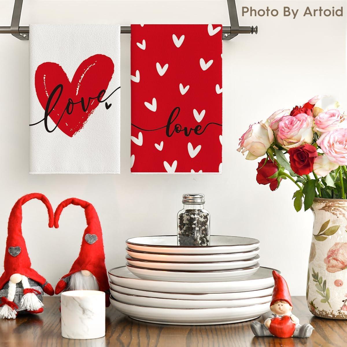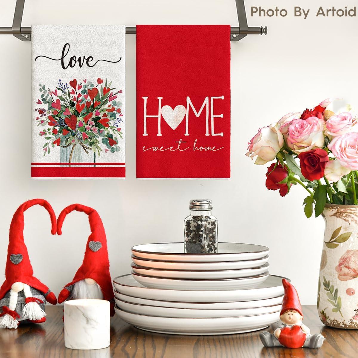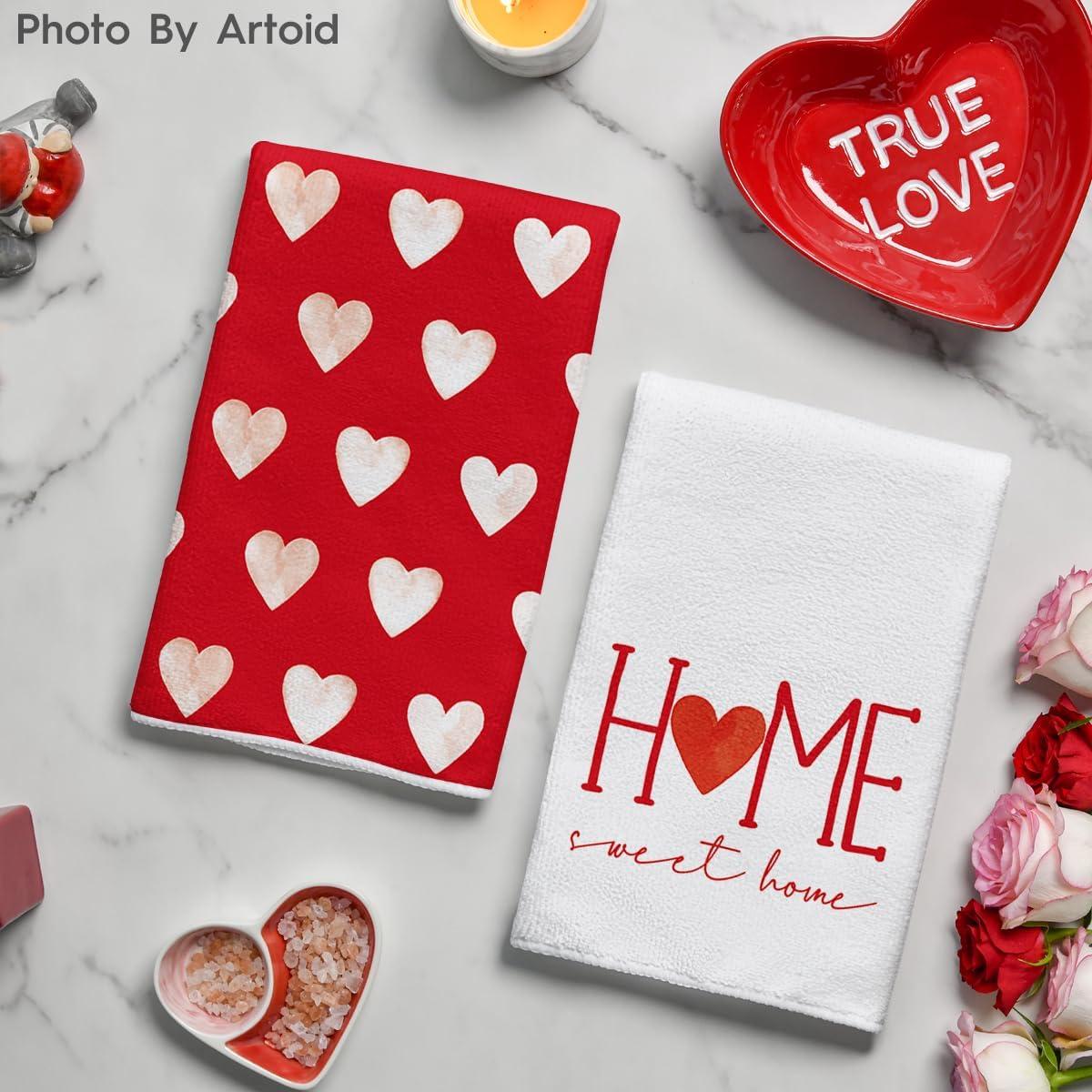 Artoid Mode Heart Love Home Sweet Home Valentine’s Kitchen Towels Dish Towels, 18×26 Inch Anniversary Wedding Decoration Hand Towels Set of 2