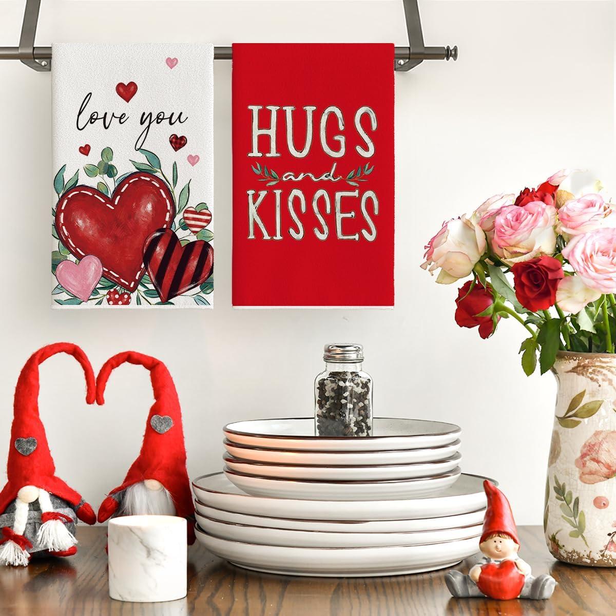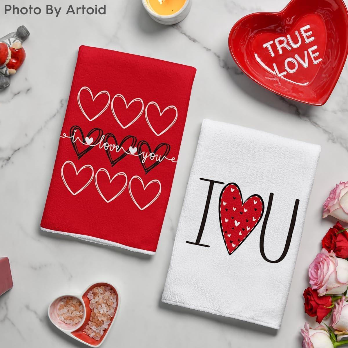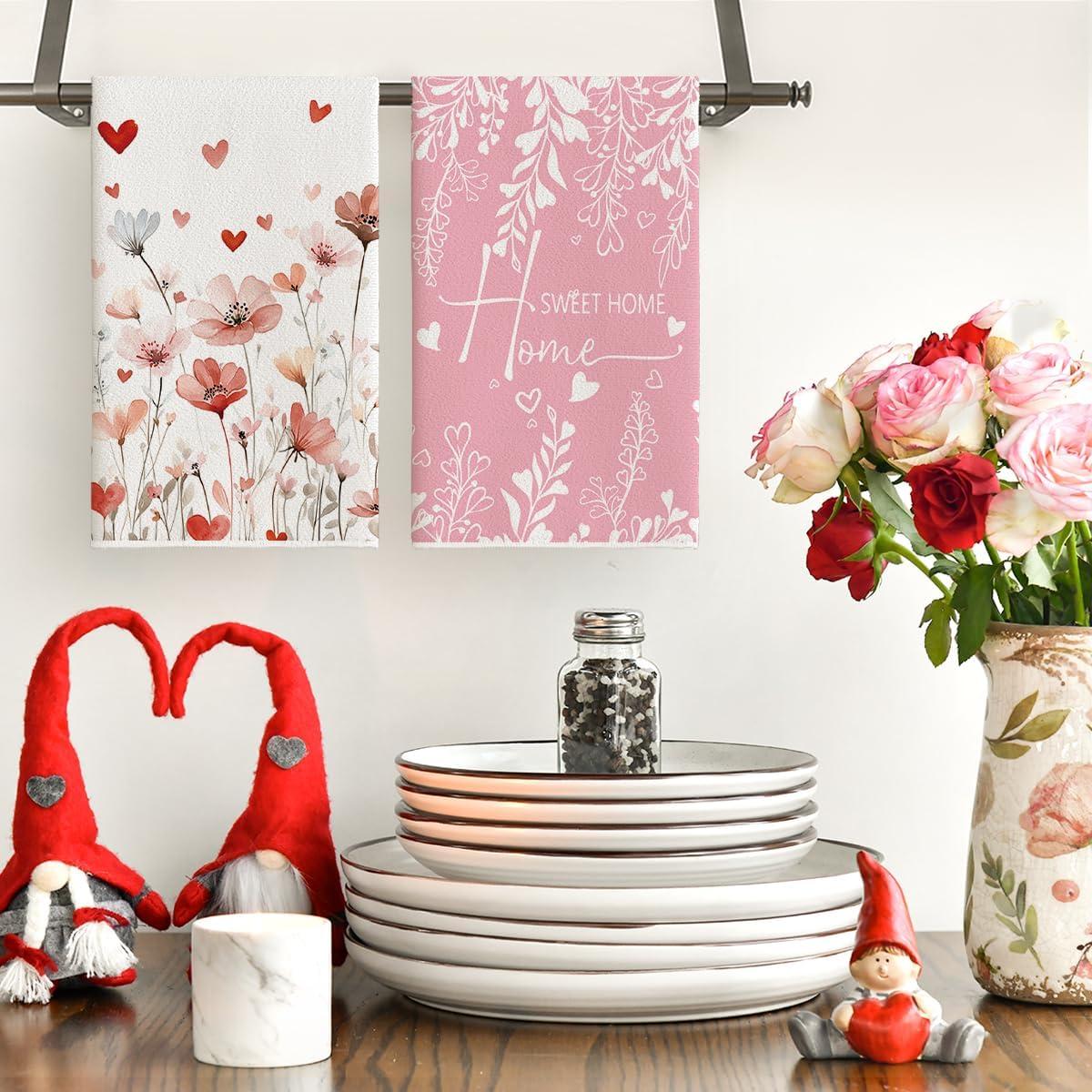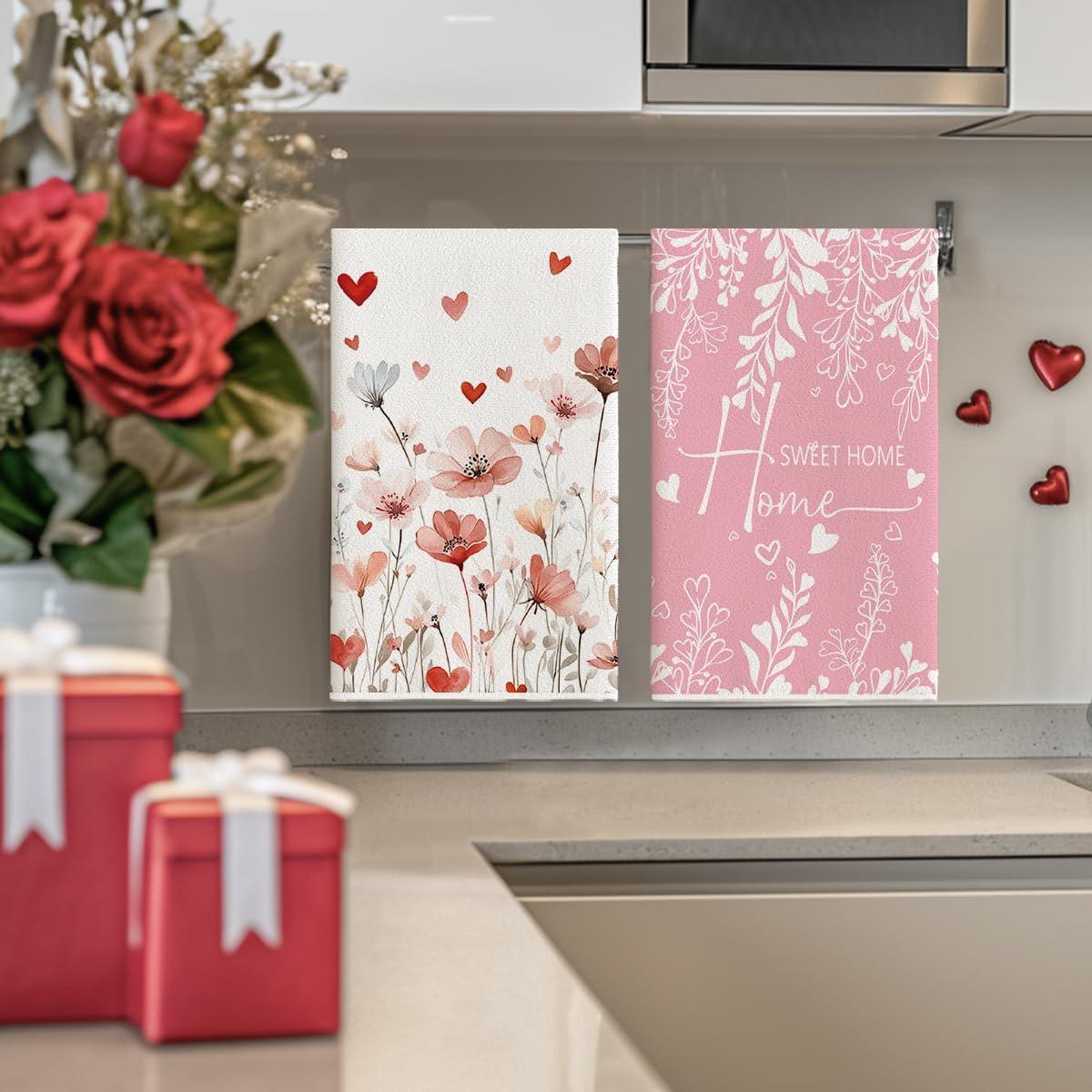 Artoid Mode Heart Love Home Sweet Home Valentine’s Kitchen Towels Dish Towels, 18×26 Inch Anniversary Wedding Decoration Hand Towels Set of 2