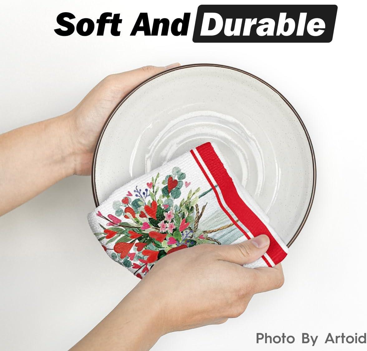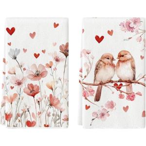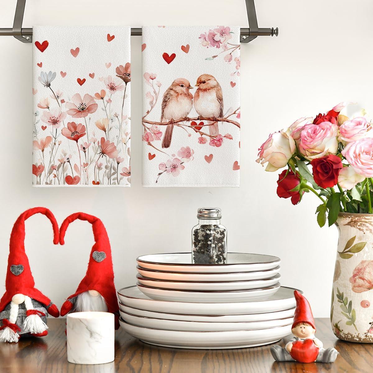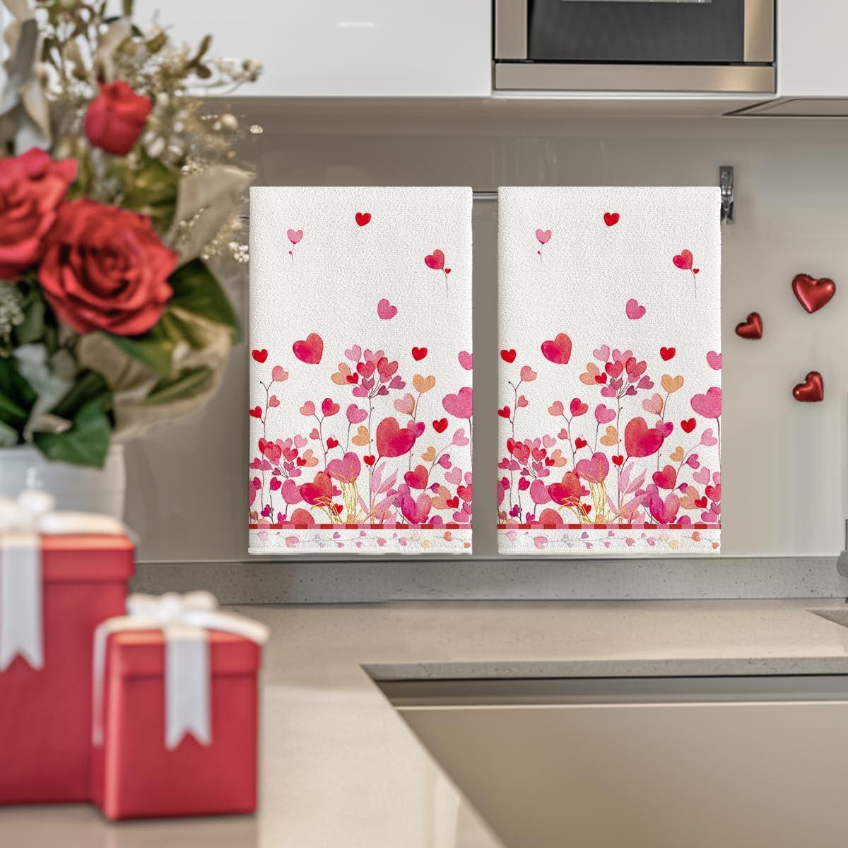 Artoid Mode Love Branch Heart Valentine’s Kitchen Towels Dish Towels, 18×26 Inch Anniversary Farmhouse Decoration Hand Towels Set of 2