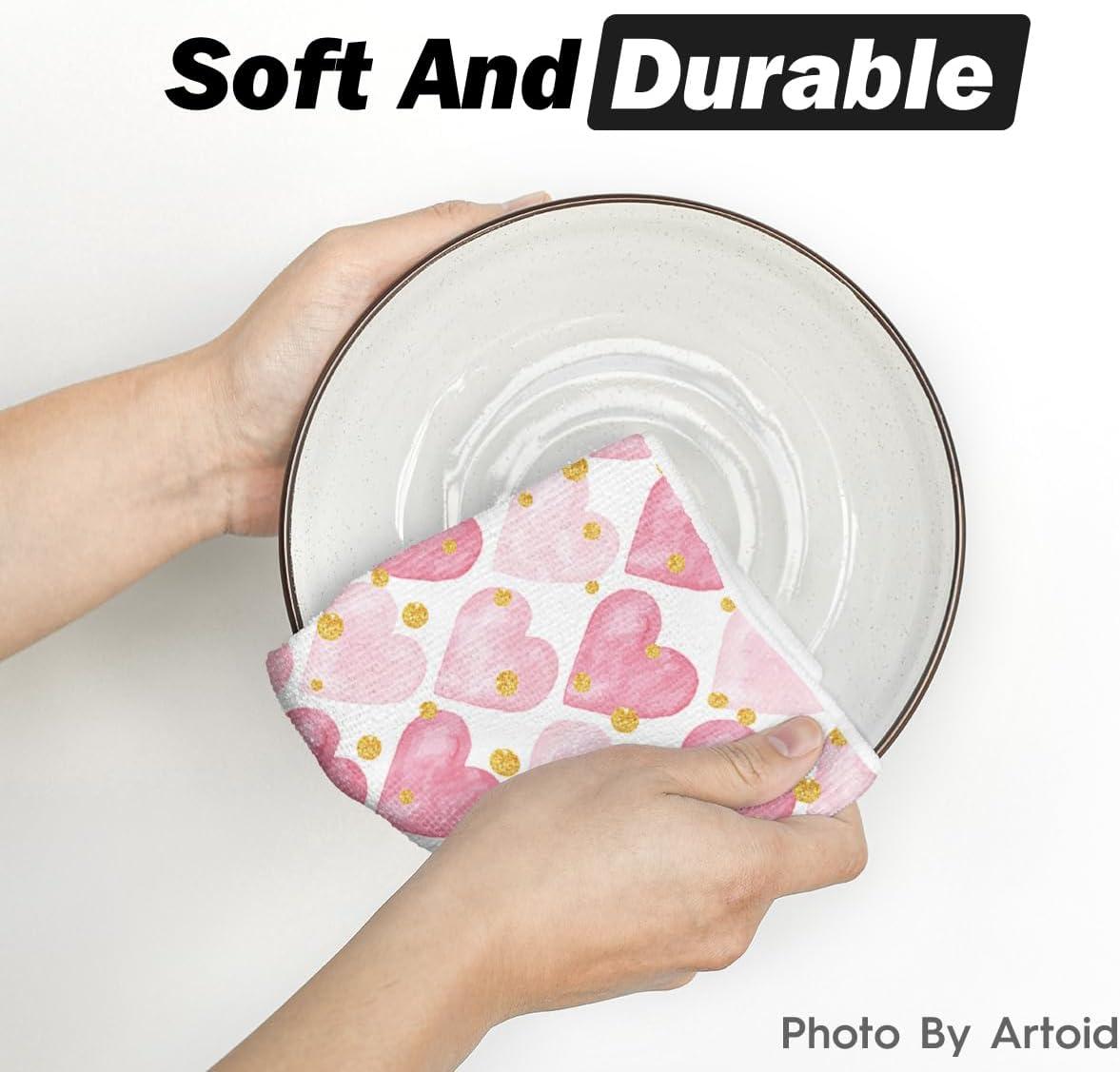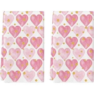 Artoid Mode Golden Pink Love Valentine’s Kitchen Towels Dish Towels, 18×26 Inch Anniversary Wedding Farmhouse Decoration Hand Towels Set of 2