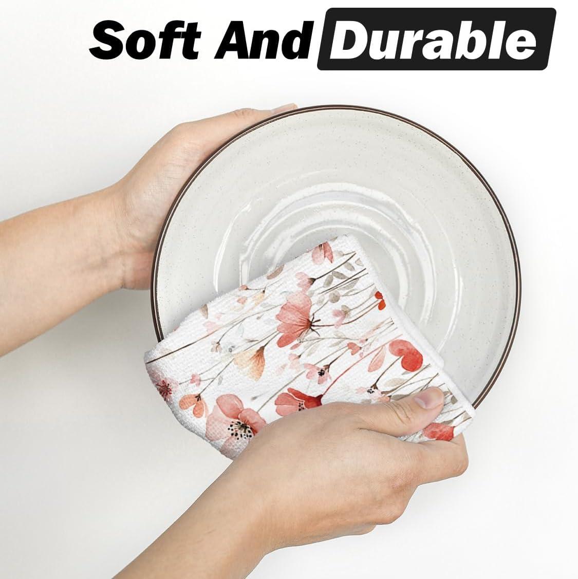Artoid Mode Love Magpie Poppy Flower Valentine’s Kitchen Towels Dish Towels, 18×26 Inch Wedding Farmhouse Decoration Hand Towels Set of 2