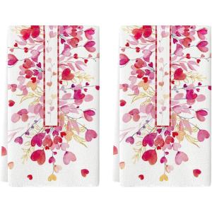 Artoid Mode Pink Heart Branch Valentine’s Kitchen Towels Dish Towels, 18×26 Inch Farmhouse Anniversary Wedding Decoration Hand Towels Set of 2(Pink)