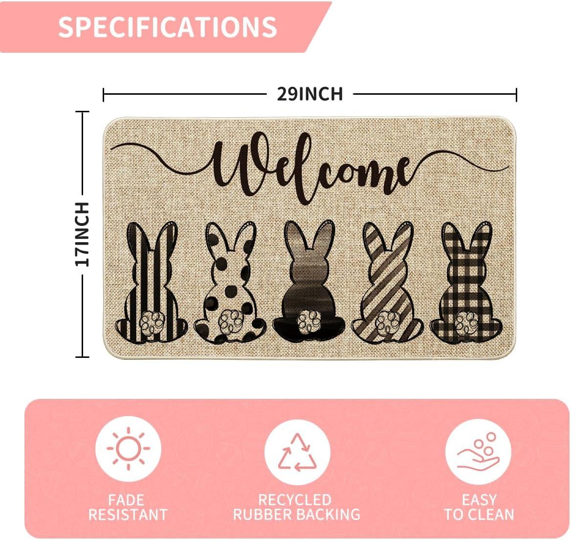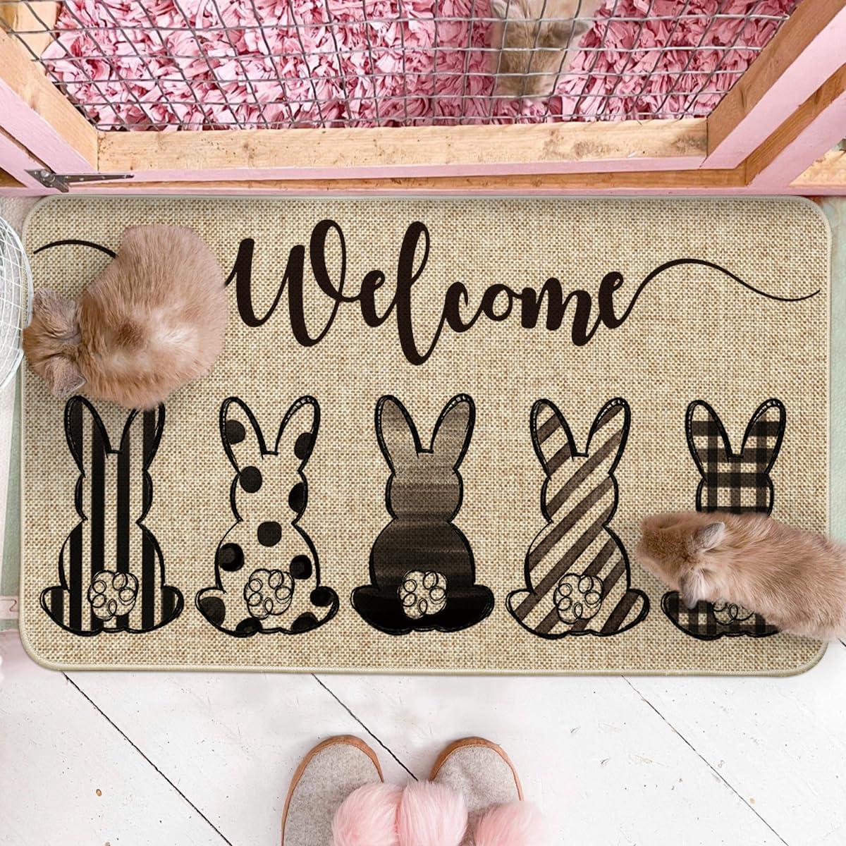 Artoid Mode Colorful Bunny Rabbits Welcome Easter Doormat, Home Decor Low-Profile Switch Rug Door Mat Floor Mat for Indoor Outdoor 17×29 Inch