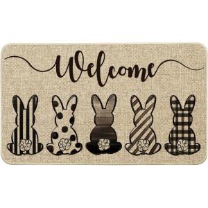Artoid Mode Cute Buffalo Plaid Stripes Dot Bunny Welcome Easter Doormat, Seasonal Spring Summer Holiday Low-Profile Yard Floor Switch Mat for Indoor Outdoor 17 x 29 Inch