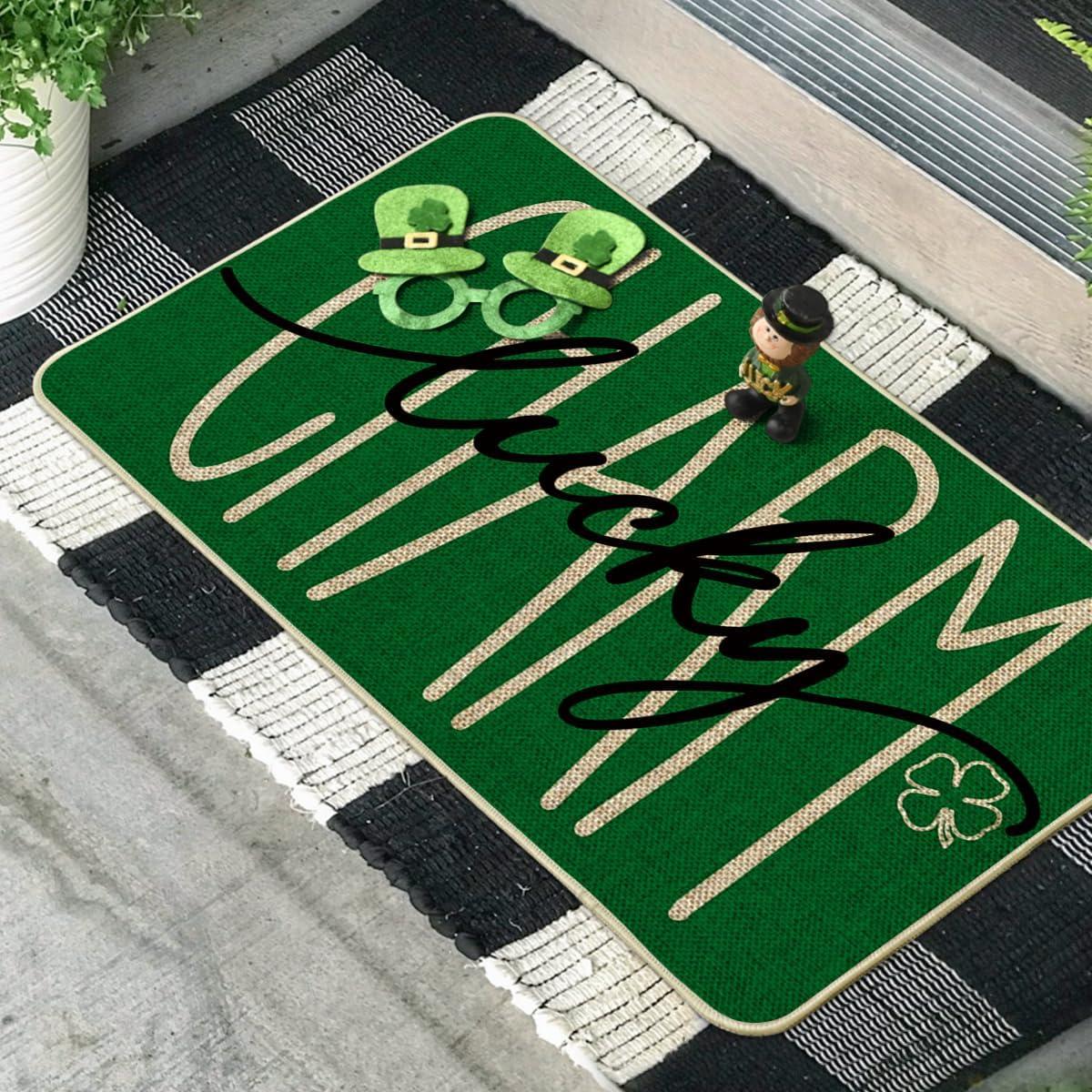 Artoid Mode Lucky Shamrock Clover St. Patrick’s Day Doormat, Home Decor Low-Profile Switch Rug Door Mat Floor Mat for Indoor Outdoor 17×29 Inch